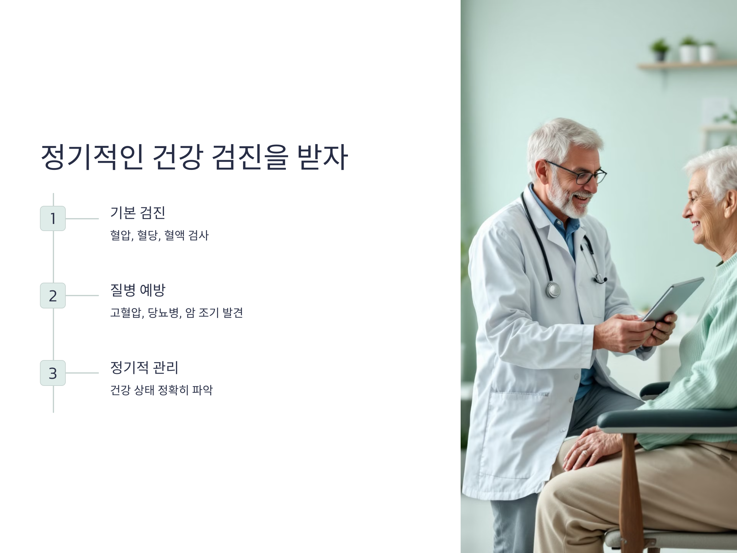 특히 고령자에게는 혈압, 혈당, 혈액 검사 등 기본적인 검진을 주기적으로 받는 것이 중요하며, 이를 통해 자신의 건강 상태를 정확히 알 수 있습니다. 건강 검진은 삶의 질을 유지하는 데 큰 도움이 될 수 있습니다.