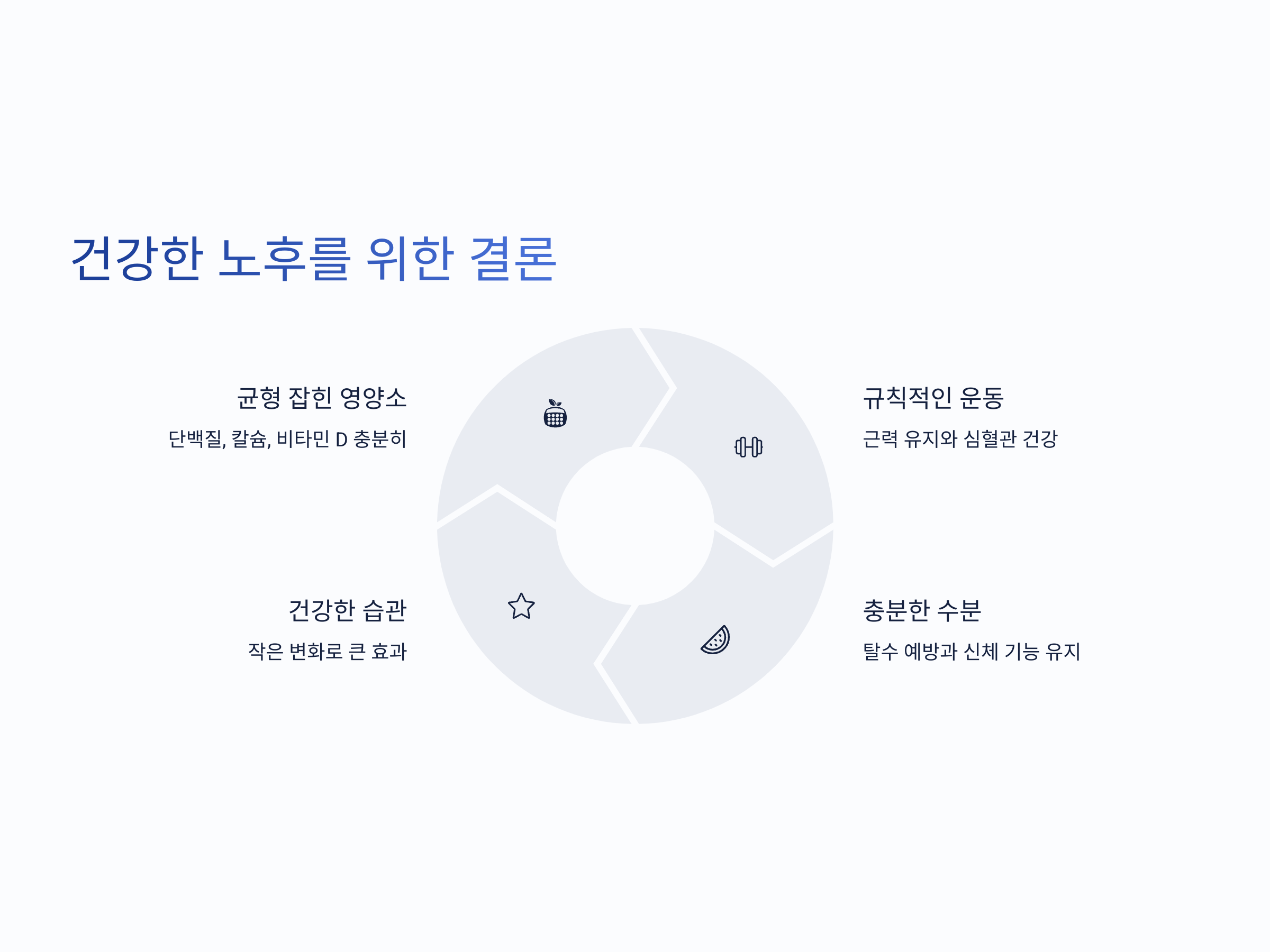 건강한 노후를 위해서는 올바른 식단과 운동이 필수적입니다. 단백질, 칼슘, 비타민 D와 같은 중요한 영양소를 충분히 섭취하고, 고지방과 고당분의 음식을 피하며, 규칙적인 운동을 병행해야 합니다. 이를 통해 더 건강하고 활기찬 노후를 보낼 수 있습니다.