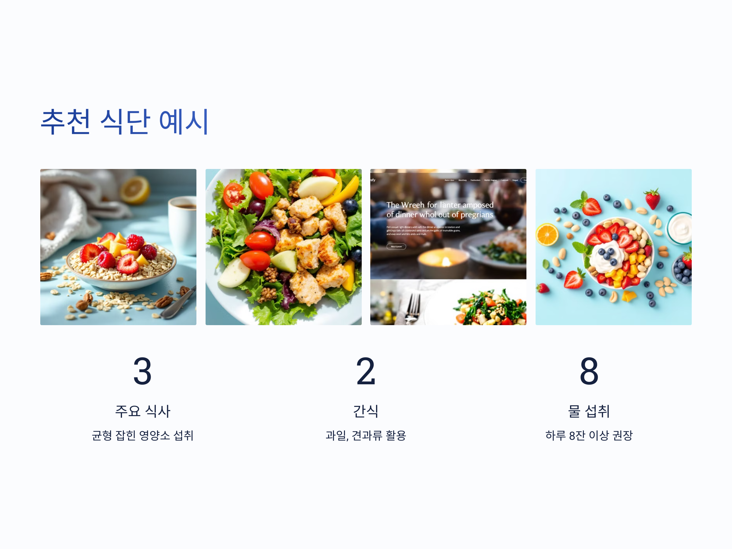 - 작은 변화부터 시작하기: 식단을 갑자기 바꾸기보다는 작은 변화부터 시작하는 것이 좋습니다. 예를 들어, 하루에 한 끼를 채소 위주의 식사로 바꾸거나, 간식 대신 과일을 섭취하는 것이 좋습니다.