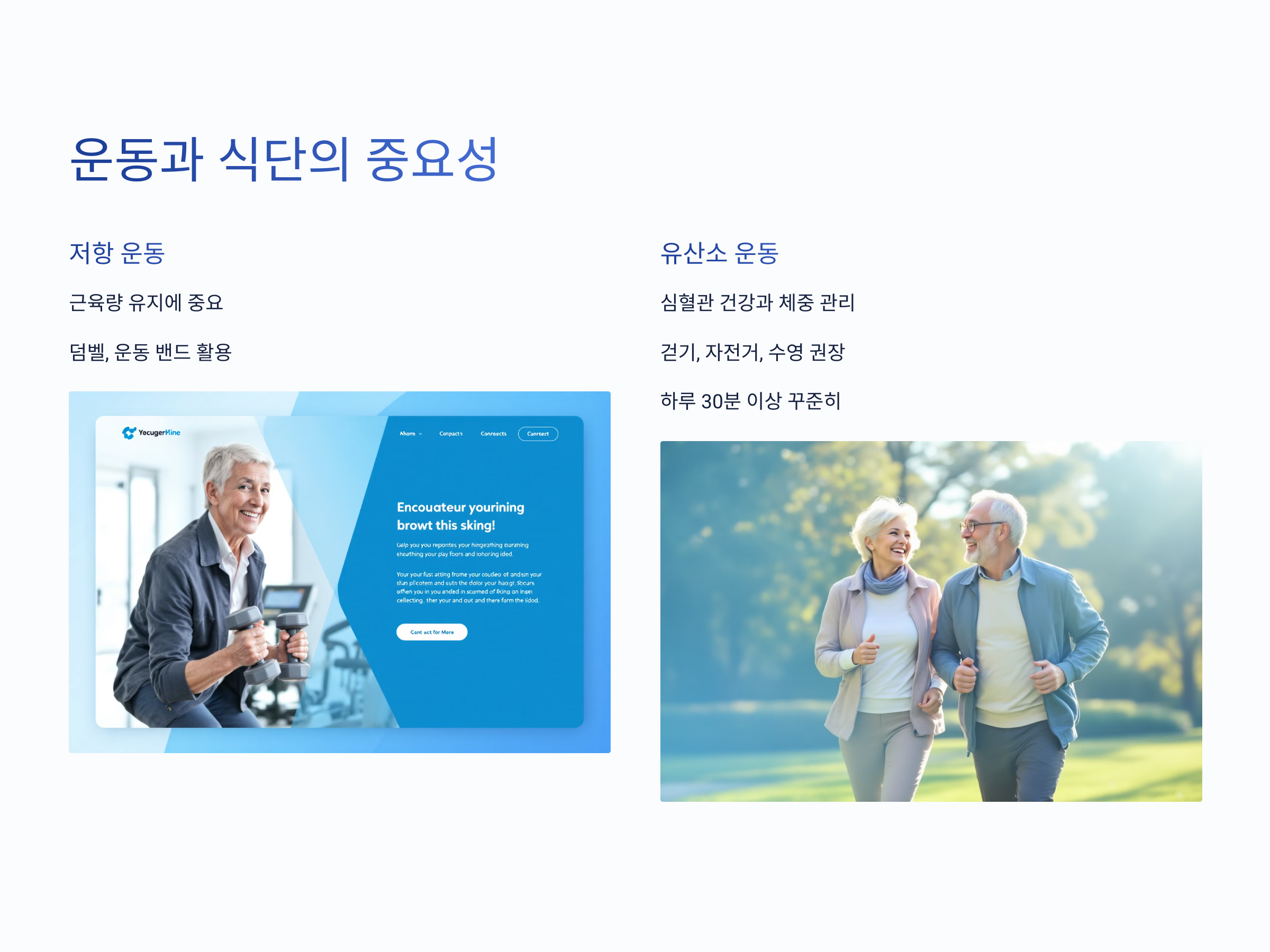 식단만큼 중요한 것은 바로 운동입니다. 노후에 건강을 유지하기 위해서는 규칙적인 운동과 함께 균형 잡힌 식사를 해야 합니다. 운동은 근육량 유지, 심혈관 건강, 유연성 개선 등 여러 가지 이점을 제공합니다.