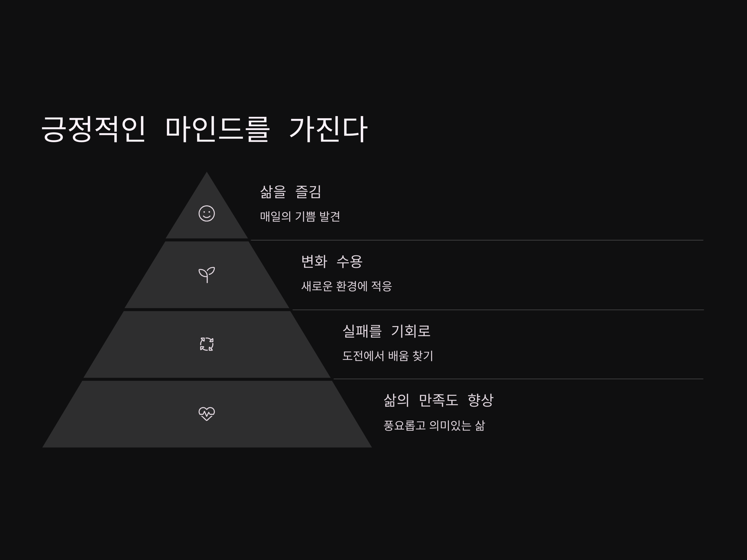 긍정적인 마인드를 가진 사람들은 배움을 통해 새로운 경험을 얻는 것을 두려워하지 않으며, 실패를 배움의 기회로 받아들입니다. 이는 더 나아가 삶의 만족도를 높이고, 더 나은 생활을 영위할 수 있게 합니다. 노후에도 계속 배우는 사람들의 긍정적인 마인드는 그들의 삶을 더욱 풍요롭고 의미 있게 만듭니다.
