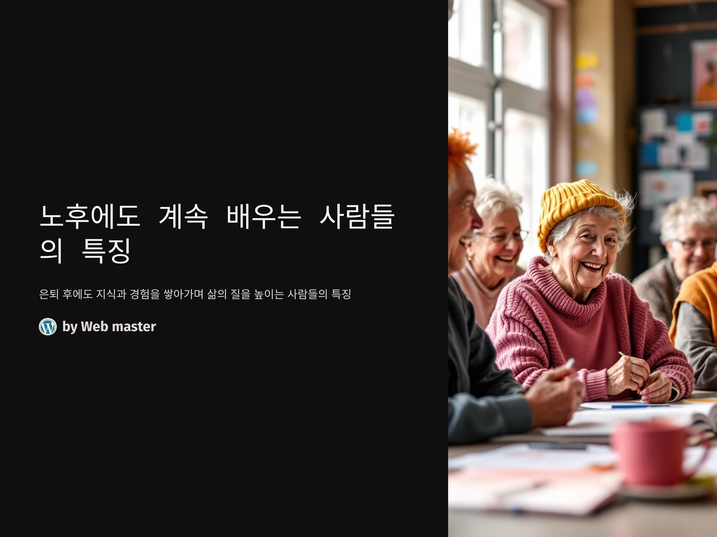 많은 사람들이 은퇴 후 편안한 생활을 꿈꾸지만, 일부는 노후에도 계속해서 배우고 성장하려는 사람들입니다. 이들은 어떤 특징을 가지고 있을까요? 은퇴 후에도 지식과 경험을 쌓아가며 삶의 질을 높이는 이들은 어떤 마인드를 가지고 있을지, 그들의 특징을 함께 살펴보겠습니다.