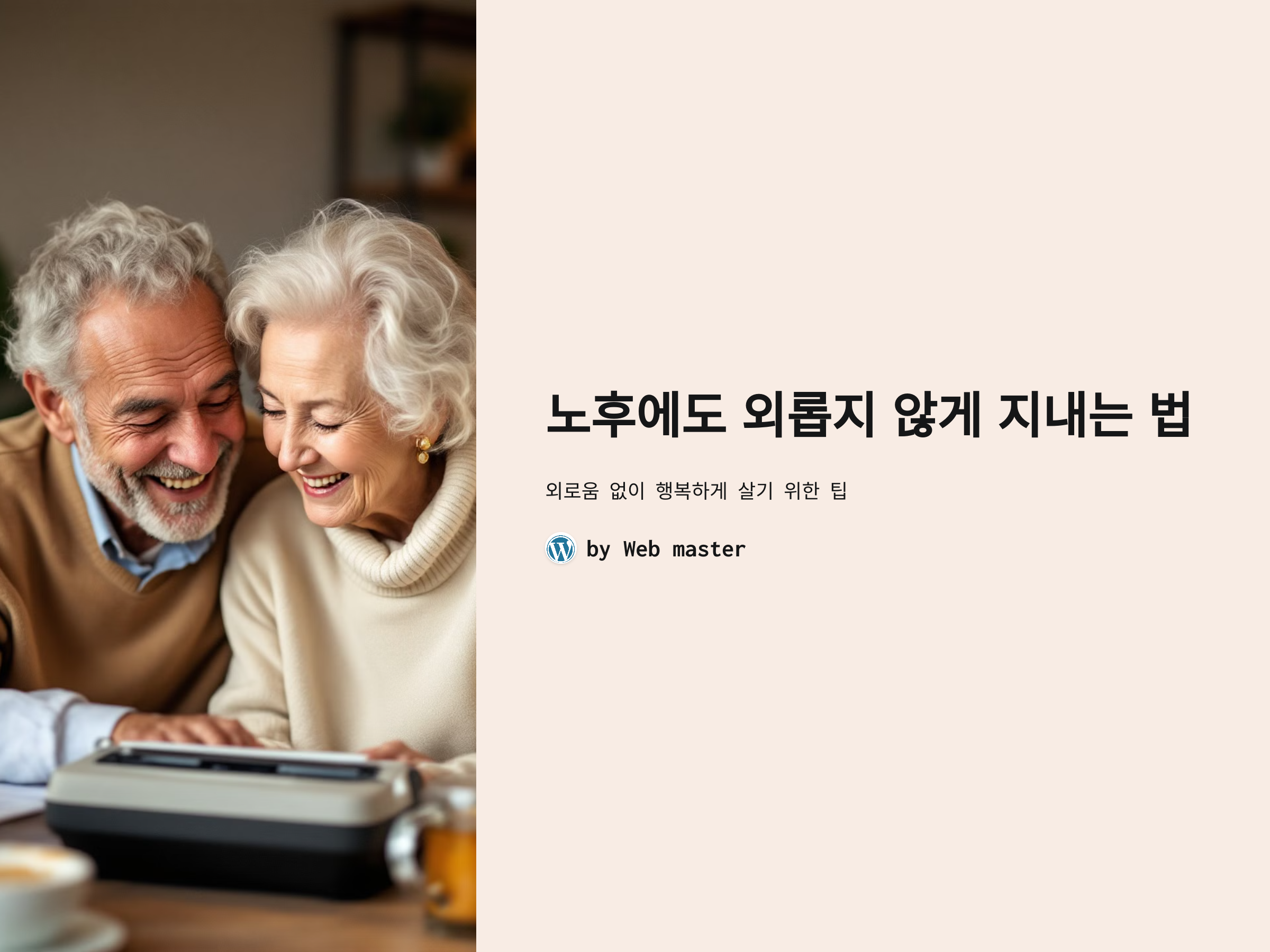 노후를 외롭지 않게 보내기 위한 방법은 다양합니다. 중요한 것은 자신에게 맞는 활동을 찾아 꾸준히 실천하는 것입니다. 기술, 취미, 사회적 교류 등을 적절히 활용하여, 행복하고 의미 있는 노후를 만들어 가시길 바랍니다.