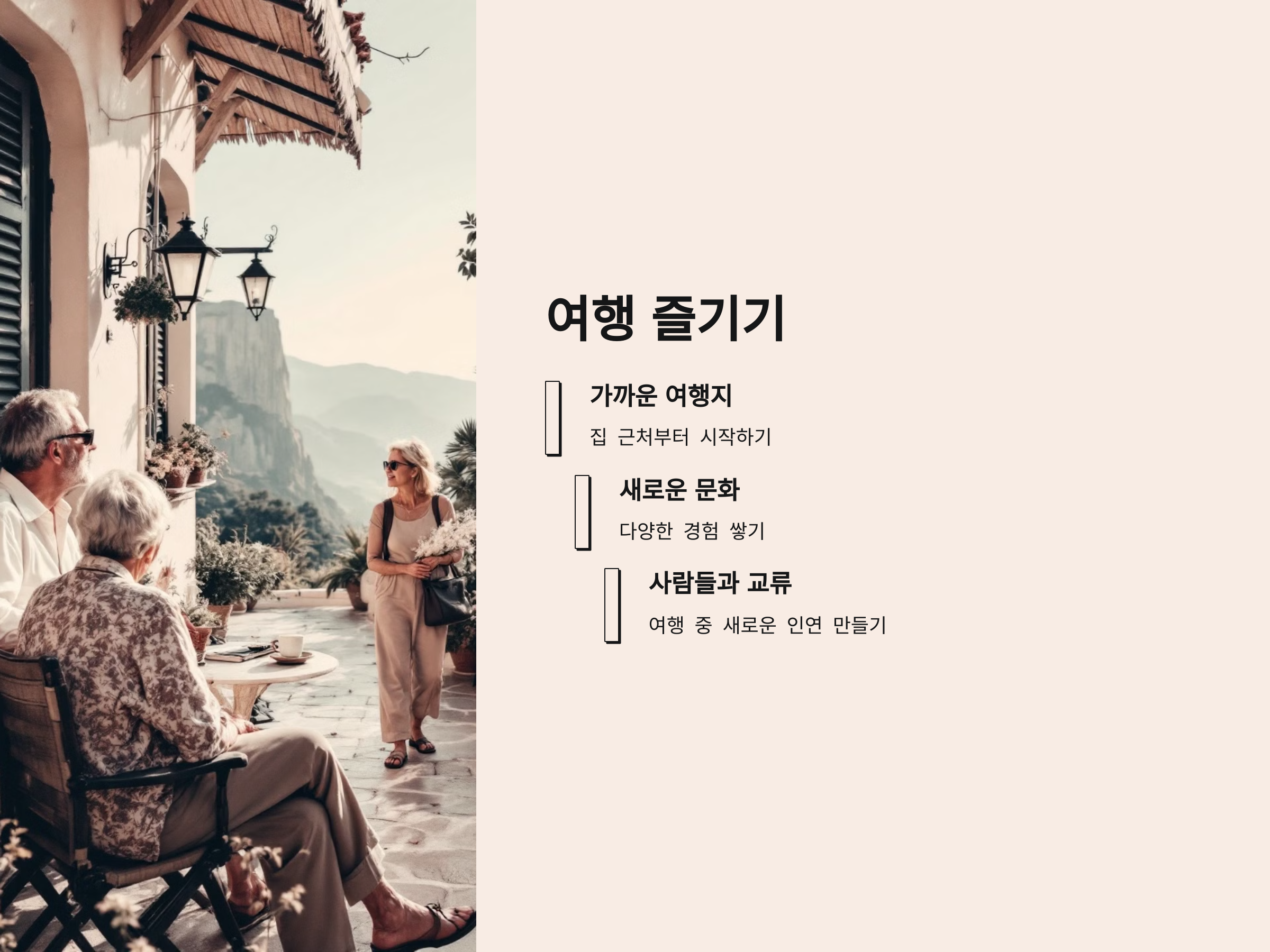 여행은 마음을 새롭게 하고, 다양한 사람들과 교류할 수 있는 기회를 제공합니다. 특히 은퇴 후 시간이 많아지면, 혼자 또는 친구, 가족과 함께 여행을 떠나는 것이 큰 도움이 될 수 있습니다. 새로운 문화와 사람들을 만나는 경험은 삶에 활력을 불어넣습니다.