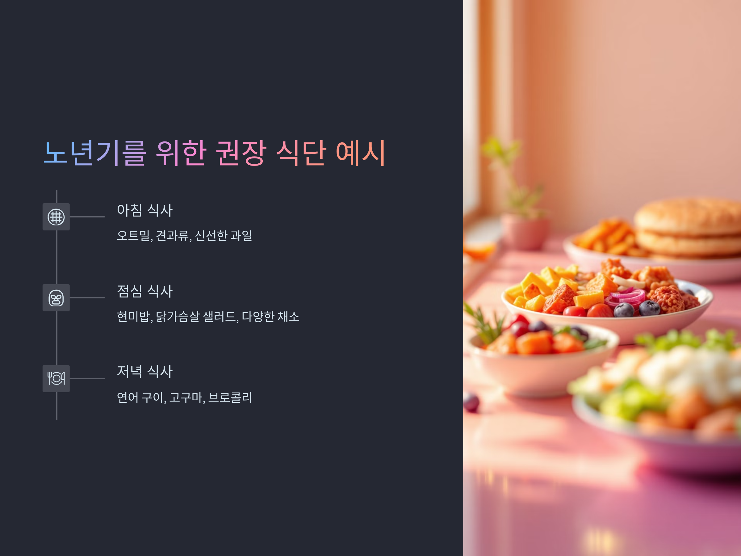 노년기를 위한 권장 식단 예시