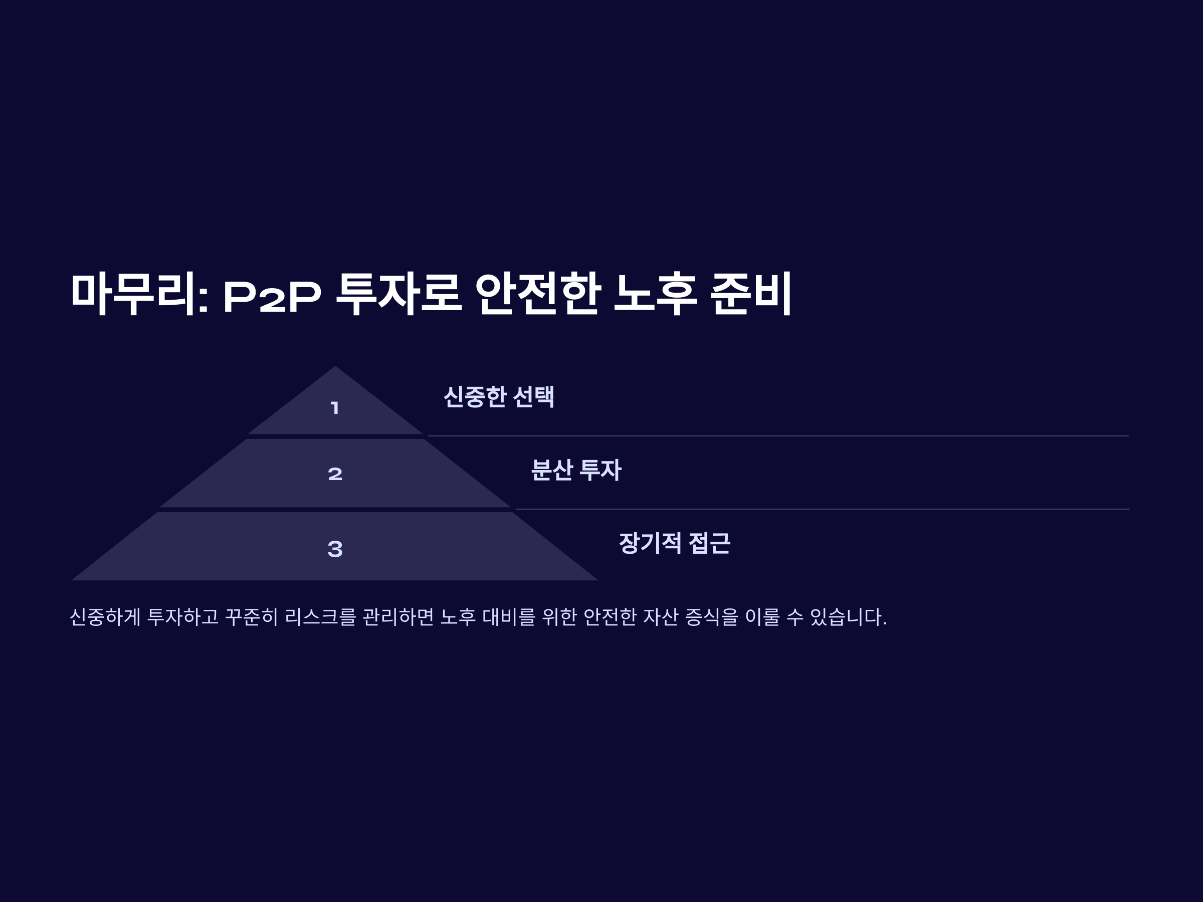 P2P 투자에 대한 기본적인 이해부터, 노후 대비를 위한 전략, 그리고 안전하게 투자하는 법까지 자세히 설명드리겠습니다.