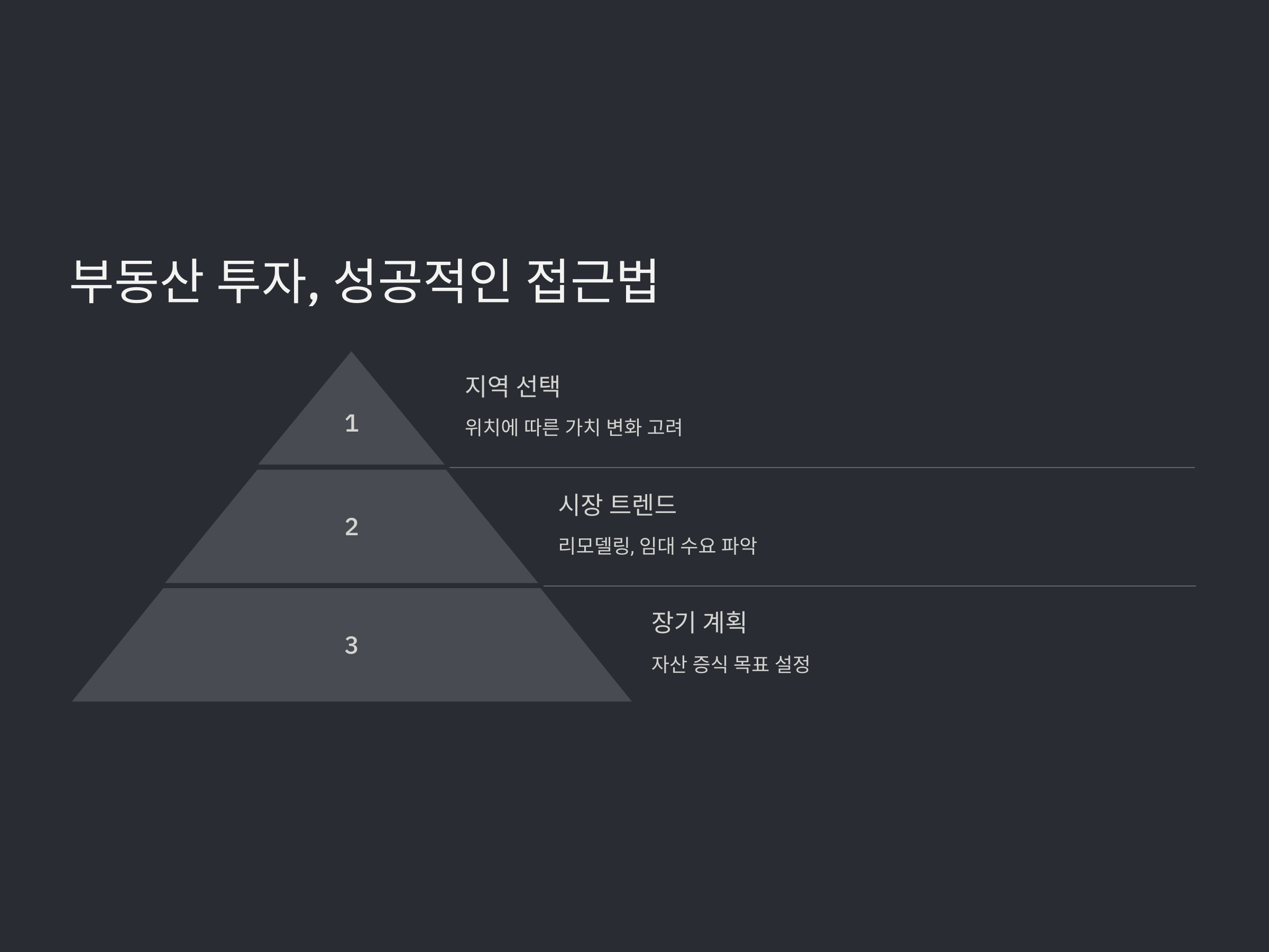 부동산 투자 시 위치와 시장 동향을 분석하는 것이 중요합니다. 또한, 장기적인 관점에서의 투자 계획을 세워야 합니다.