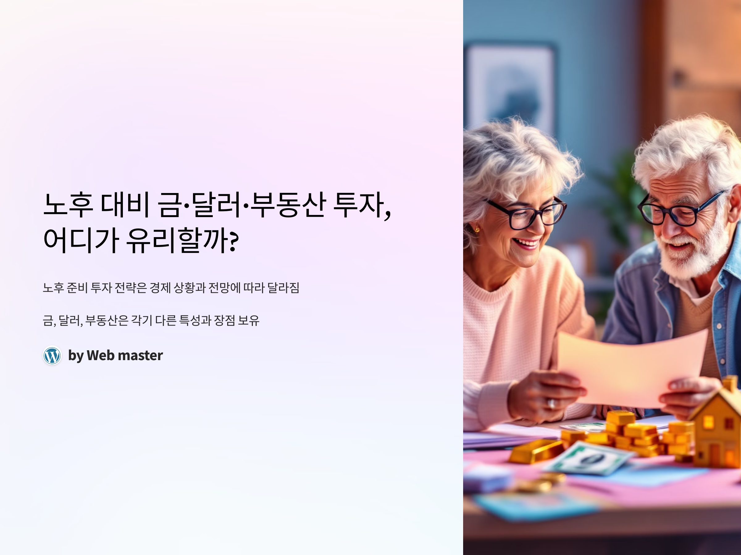 최근 경제 불확실성이 커지면서, 사람들이 자산을 안정적으로 보존하려는 경향이 강해지고 있습니다. 특히 금과 달러는 '안전 자산'으로 인식되어 많은 투자자들이 선호하는 자산군으로 자리잡고 있습니다. 하지만, 부동산 역시 여전히 많은 사람들에게 안정적인 투자처로 평가받고 있습니다. 그럼 이제 각 자산이 어떻게 노후 대비에 도움이 될 수 있는지 구체적으로 살펴보겠습니다.