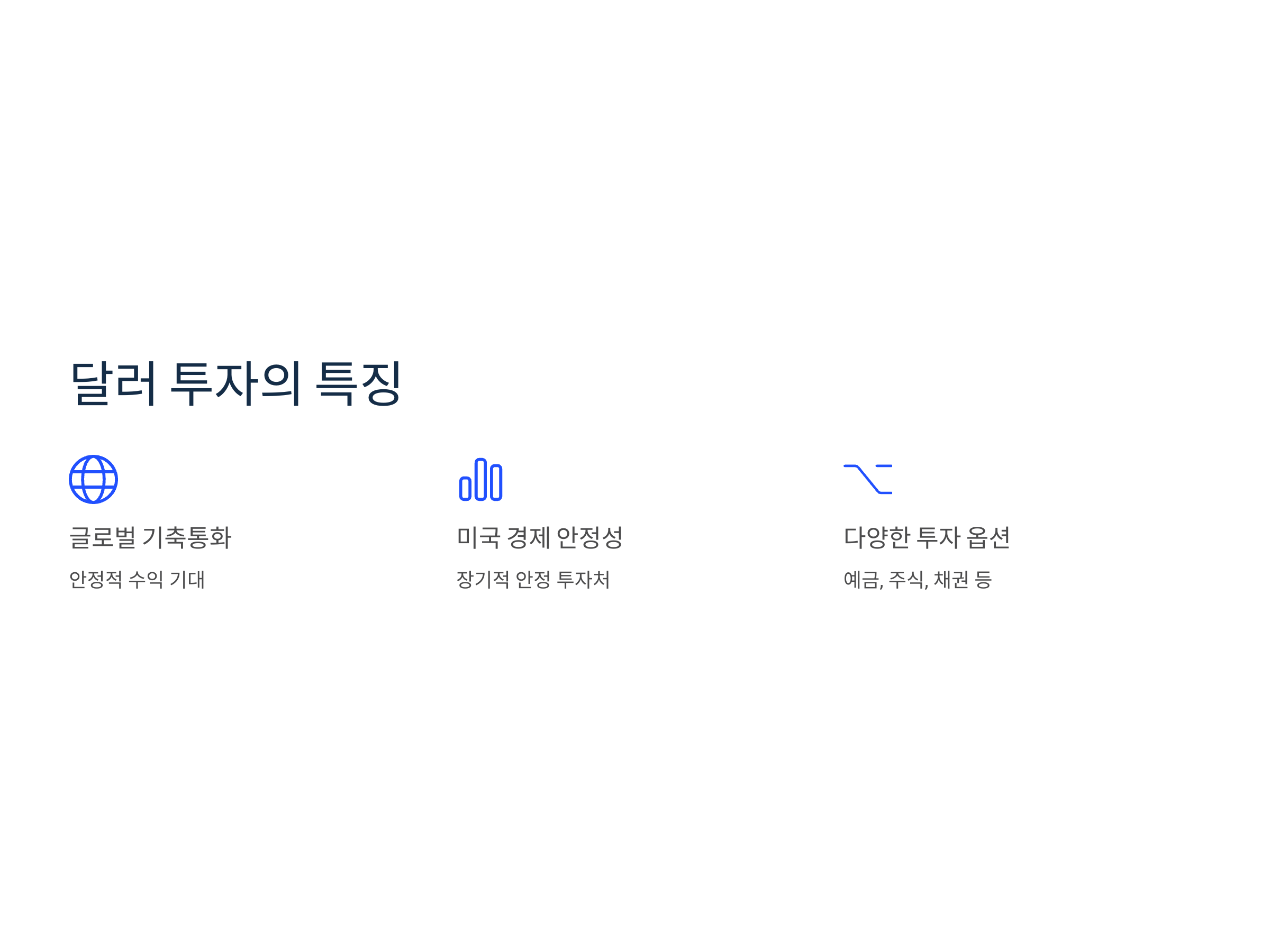 - 글로벌 기축통화: 세계적으로 사용되는 통화이기 때문에 안정적인 수익을 기대할 수 있습니다.