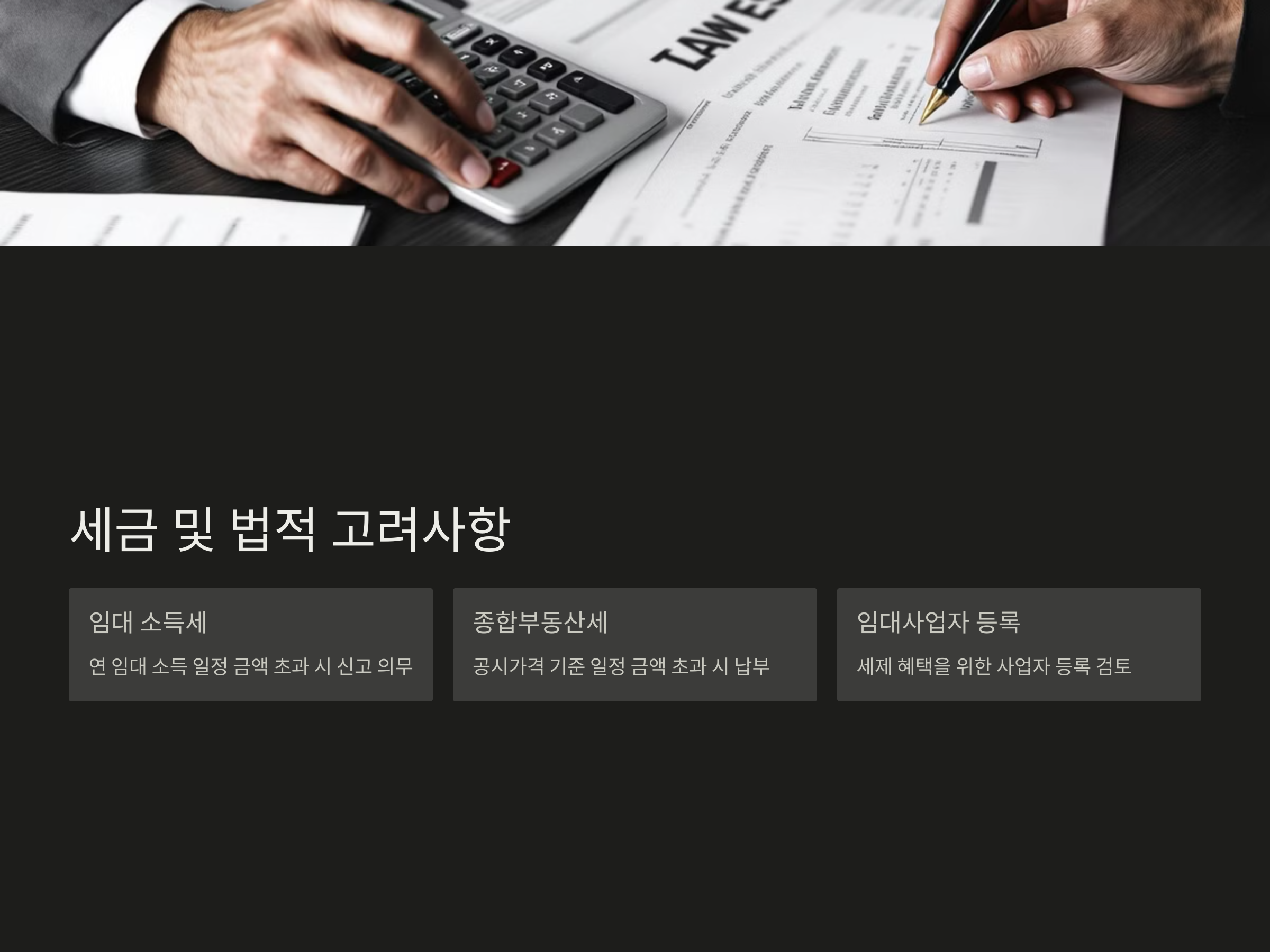 - 임대 소득세 신고: 연 임대 소득이 일정 금액을 초과하면 소득세 신고 의무가 발생합니다.