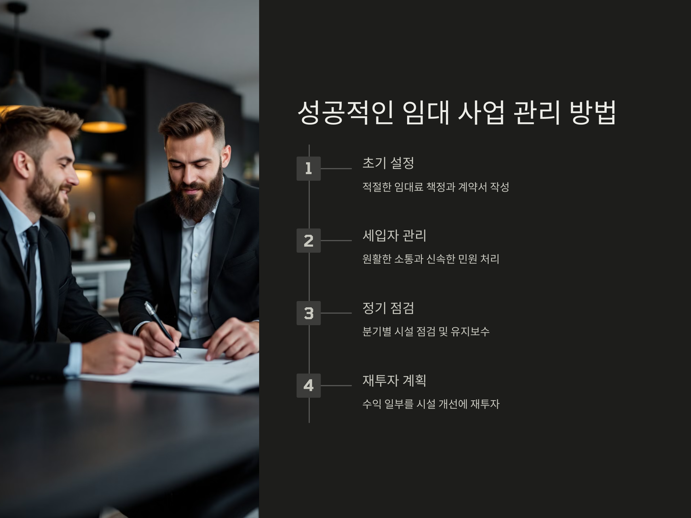 - 유지 보수 계획: 정기적인 점검과 신속한 수리를 통해 부동산 가치를 유지하고 세입자의 만족도를 높입니다. citeturn0search3
