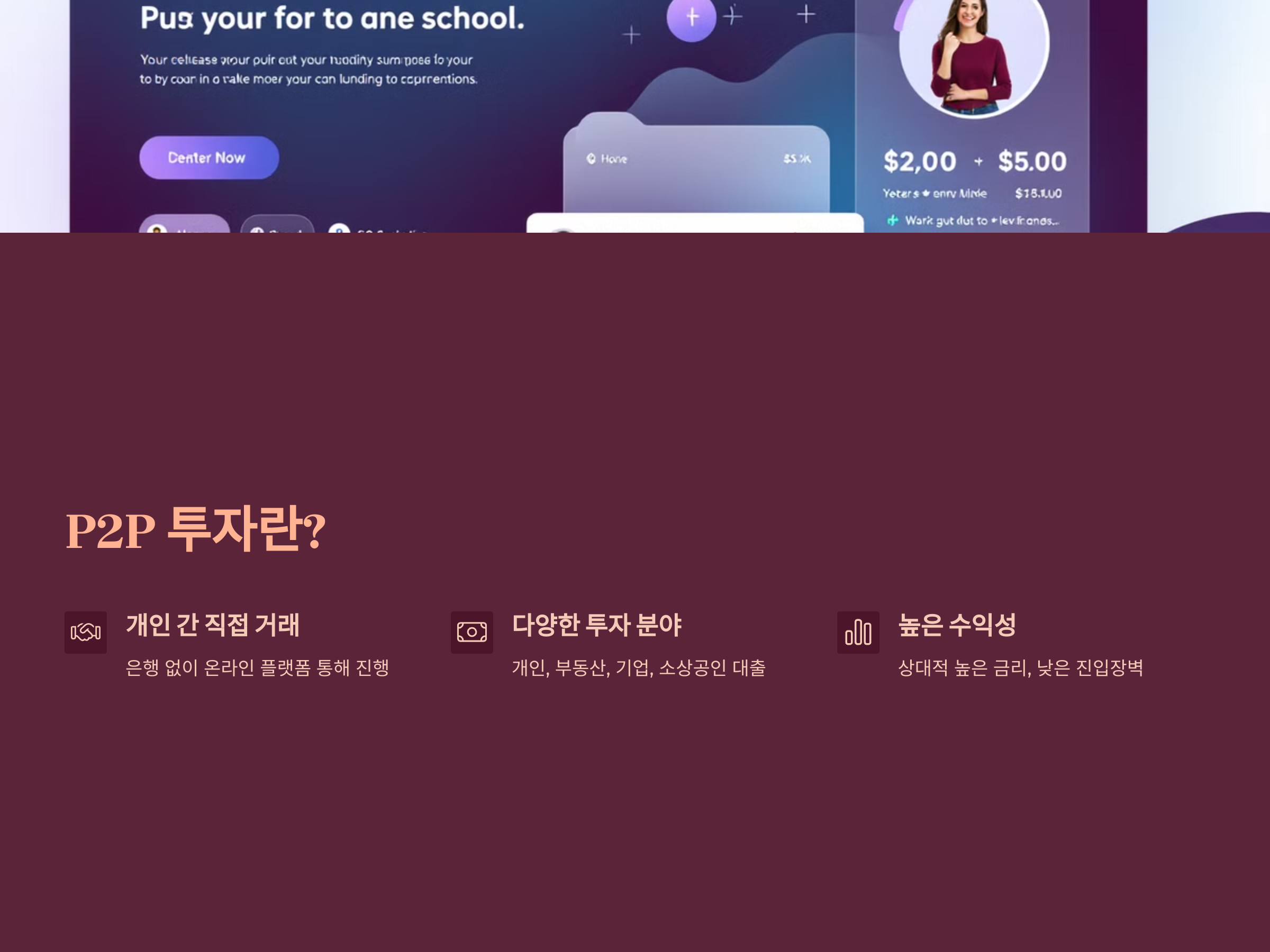 P2P 투자 플랫폼은 다양한 분야에 걸쳐 존재하는데, 개인 대출뿐만 아니라 부동산, 기업 대출, 소상공인 대출 등 다양한 형태의 대출을 연결해 줍니다. 특히, 노후 대비를 위한 투자로는 안정성과 수익성을 동시에 고려한 포트폴리오 구성이 중요한데, P2P 투자는 상대적으로 높은 금리를 제공하면서도 비교적 낮은 진입 장벽을 가진 투자 방법입니다.