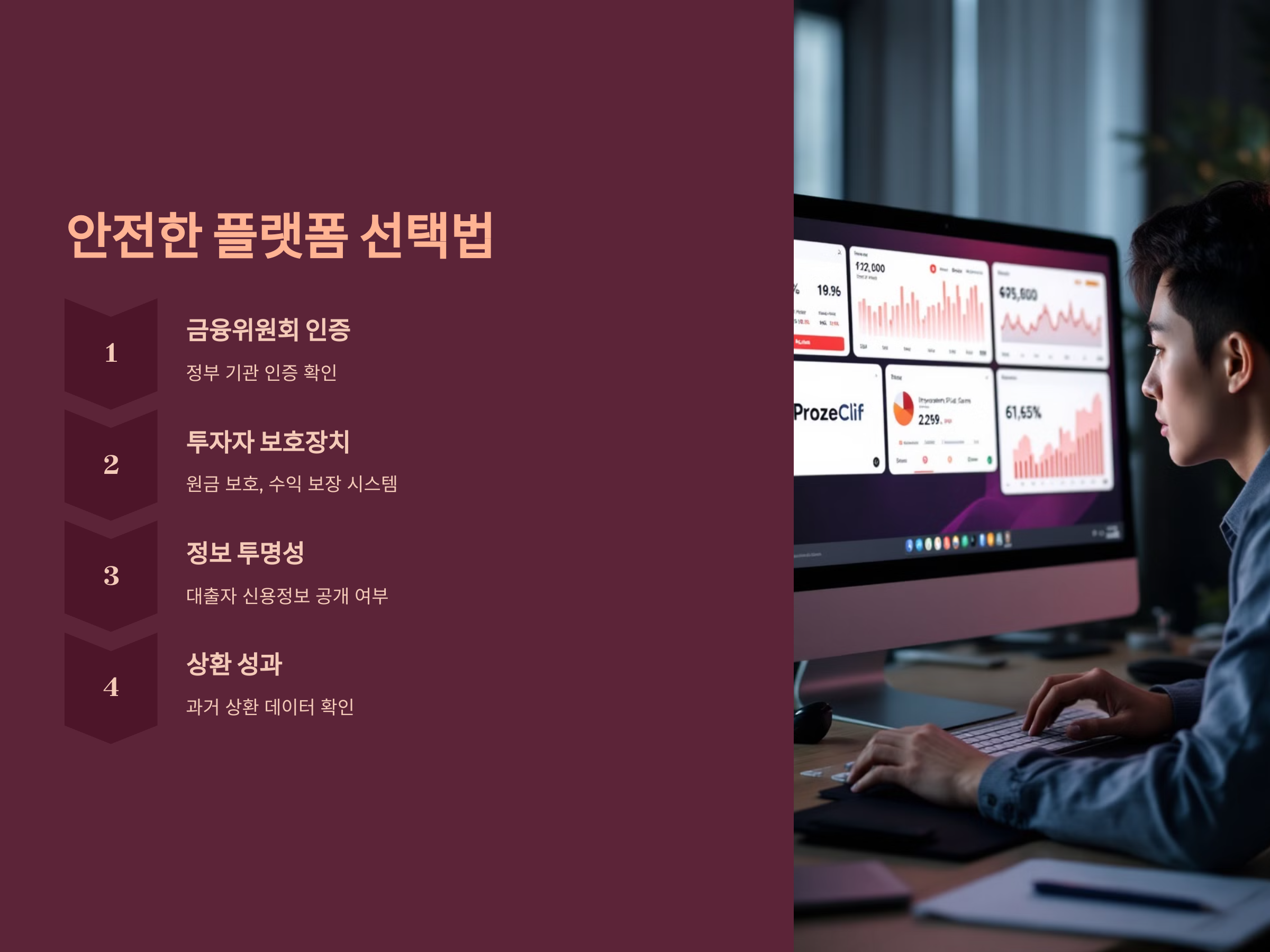 안전한 P2P 투자를 위해서는 신뢰할 수 있는 플랫폼을 선택하는 것이 가장 중요합니다. P2P 투자 플랫폼을 선택할 때 고려해야 할 요소는 다음과 같습니다: