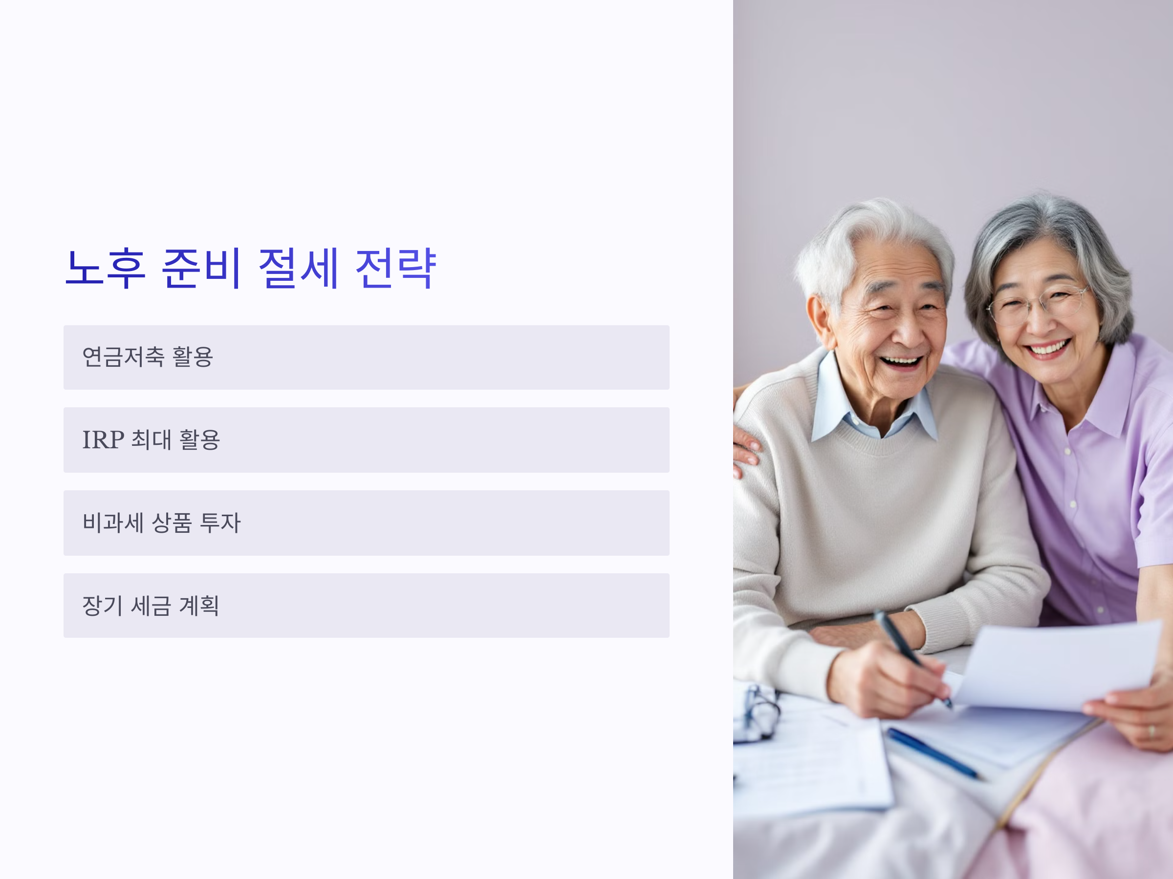 노후를 준비하면서 세금을 줄이기 위한 전략을 세우는 것 역시 중요합니다. 장기적인 세금 계획을 수립하여, 매년 발생할 수 있는 세금 부담을 예측하고 이를 줄일 수 있는 방법을 고민하는 것이 필요합니다. 세금 전략을 잘 세운다면, 은퇴 후에 발생하는 세금 부담을 줄이는 데 큰 도움이 될 수 있습니다.