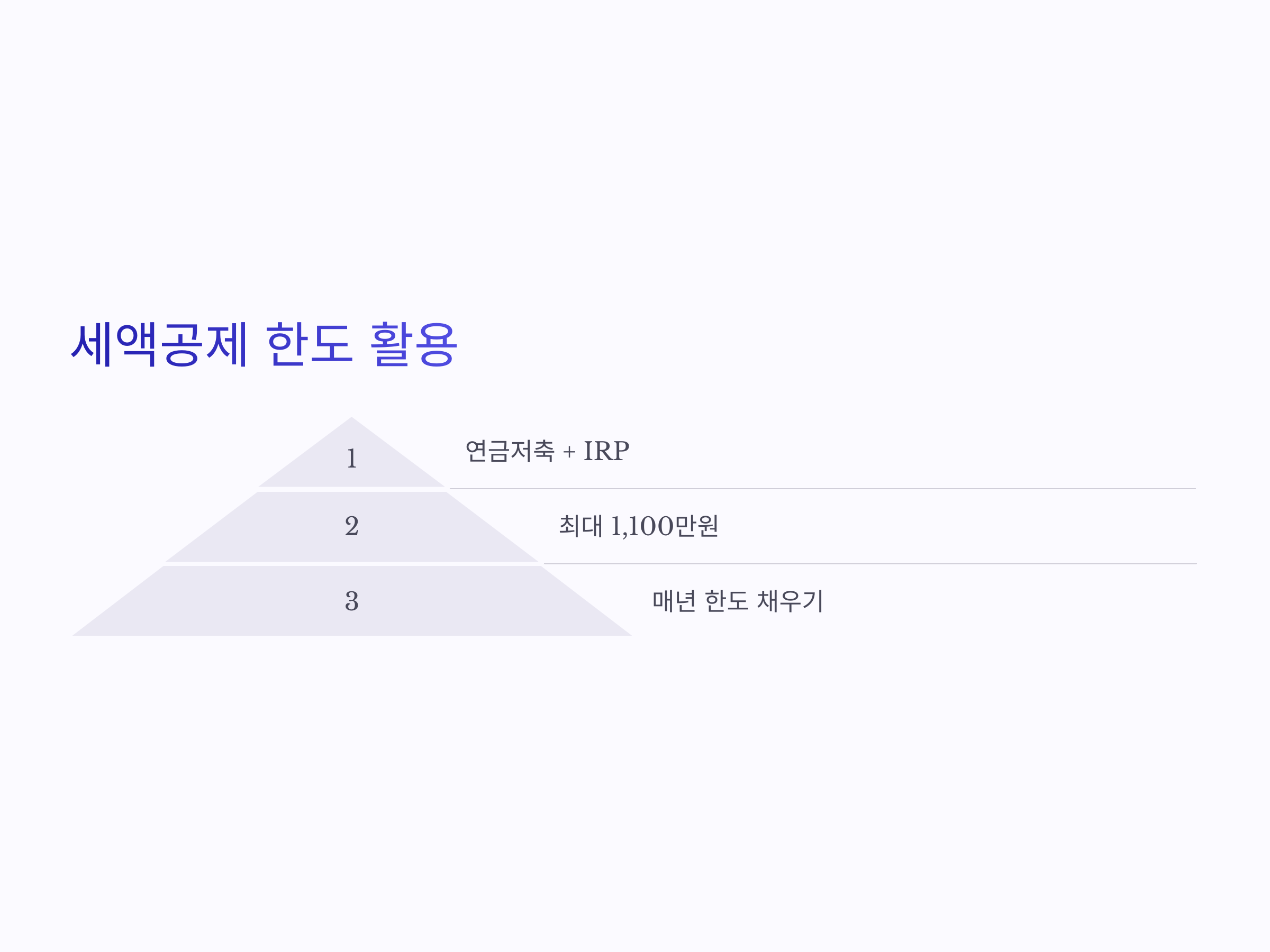 세액공제 한도를 최대한 활용하려면, 매년 납입할 수 있는 금액을 정확하게 파악하고 그 한도까지 채우는 것이 중요합니다. 연금저축과 IRP를 동시에 활용하면, 최대 1,100만 원까지 세액공제를 받을 수 있습니다. 따라서 매년 이러한 한도에 맞춰 납입을 계획하면 세금 부담을 상당히 줄일 수 있습니다.