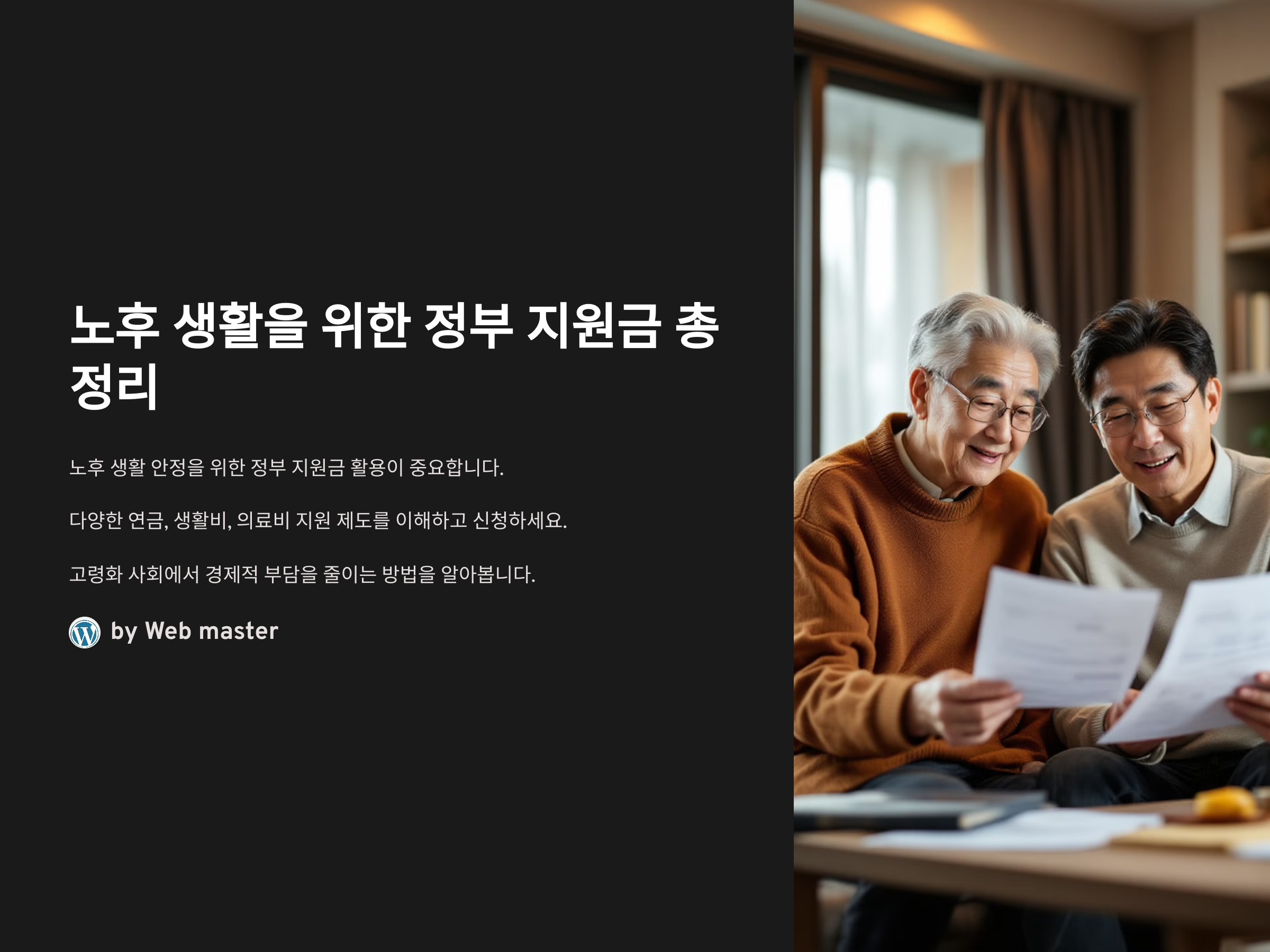 노후 생활을 위한 정부 지원금은 그 종류와 범위가 매우 다양합니다. 이를 잘 활용하면 경제적 부담을 줄이고, 건강과 주거 걱정 없이 안정적인 노후 생활을 할 수 있습니다. 하지만 중요한 것은 각 지원금에 대한 정확한 이해와 신청 절차입니다. 이 모든 지원금을 적절히 활용하기 위해서는 사전 준비가 필수적입니다.