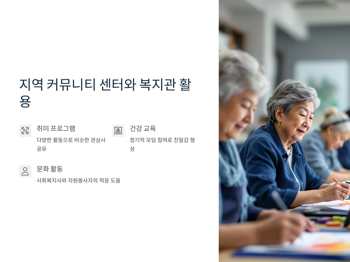 노년층을 위한 지역 커뮤니티 센터와 복지관은 친구를 사귈 수 있는 최적의 장소 중 하나입니다. 이곳에서는 다양한 취미 프로그램, 건강 교육, 문화 활동 등이 운영되고 있어 비슷한 관심사를 가진 사람들과 자연스럽게 어울릴 수 있는 환경이 마련되어 있습니다. 특히 정기적인 모임에 참여하면 반복적인 접촉을 통해 친밀감을 쌓기 쉬워집니다.