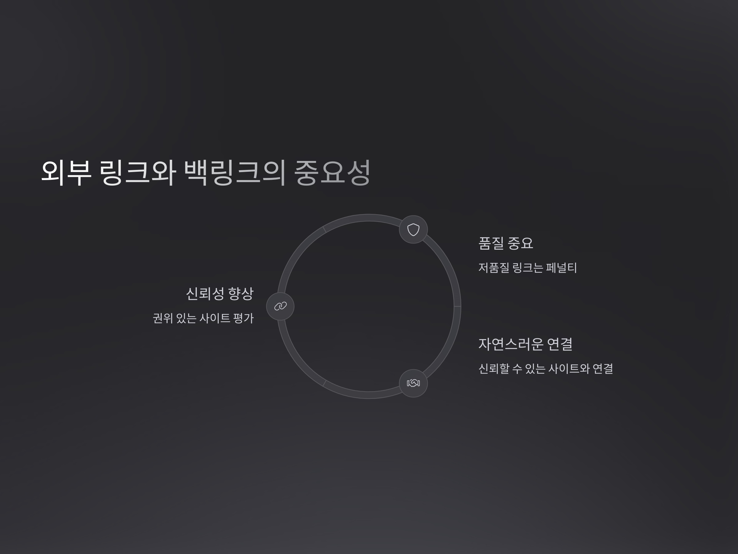 SEO 최적화에서 외부 링크와 백링크는 매우 중요한 요소입니다. 백링크는 다른 사이트에서 여러분의 블로그를 링크해주는 것으로, 이는 구글이 여러분의 콘텐츠를 신뢰하고 권위가 있다고 평가하는 중요한 지표 중 하나입니다. 좋은 품질의 사이트에서 백링크를 얻으면 블로그의 권위와 신뢰성을 높일 수 있습니다.