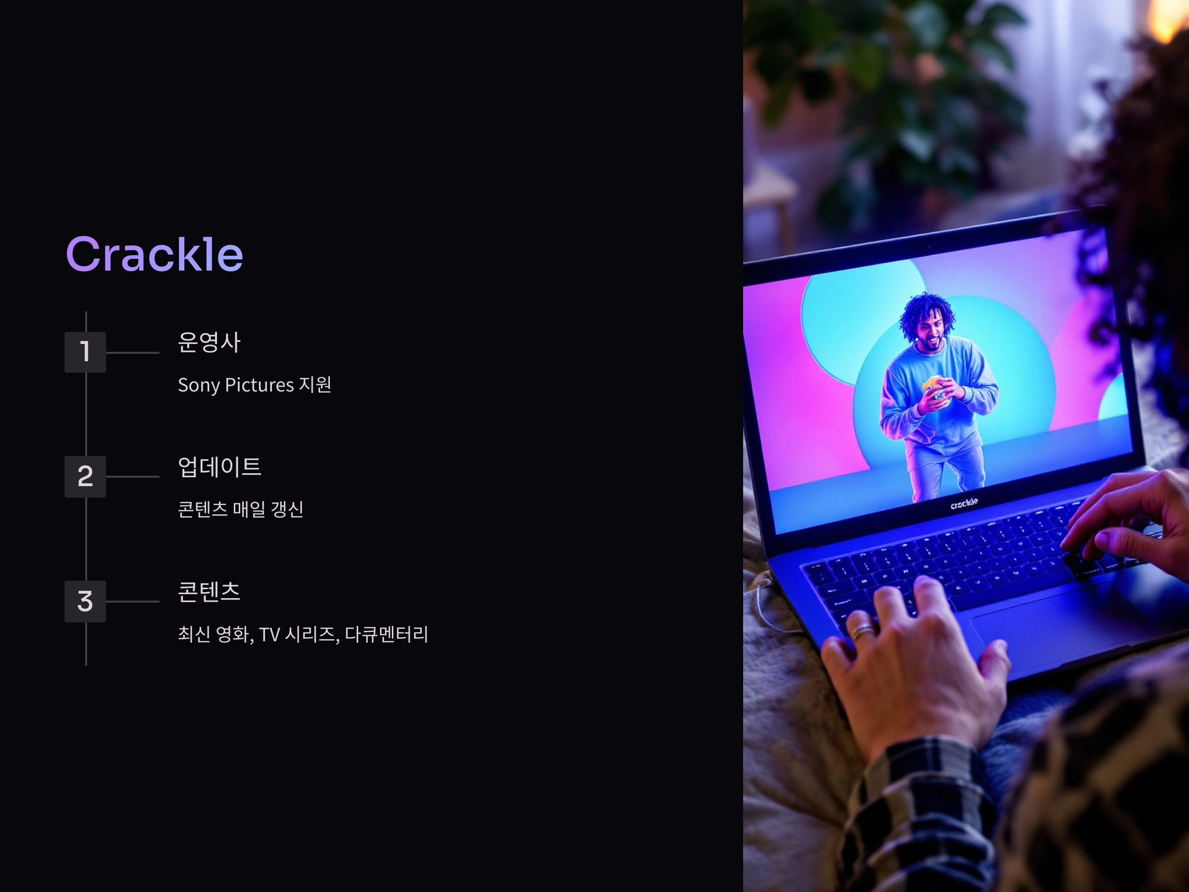 Crackle은 무료 스트리밍 서비스로, 다양한 영화와 TV 프로그램을 제공합니다. 이 플랫폼은 Sony Pictures가 지원하며, 크래클의 가장 큰 장점은 영화와 TV 프로그램을 매일 업데이트한다는 점입니다. 최신 영화를 포함해 고전적인 영화, 인기 있는 TV 시리즈와 다큐멘터리를 즐길 수 있습니다. Crackle은 광고를 포함하는 대신, 사용자에게 무료로 콘텐츠를 제공합니다. 다양한 장르의 영화와 드라마를 다시 보고 싶은 분들에게 특히 유용합니다.