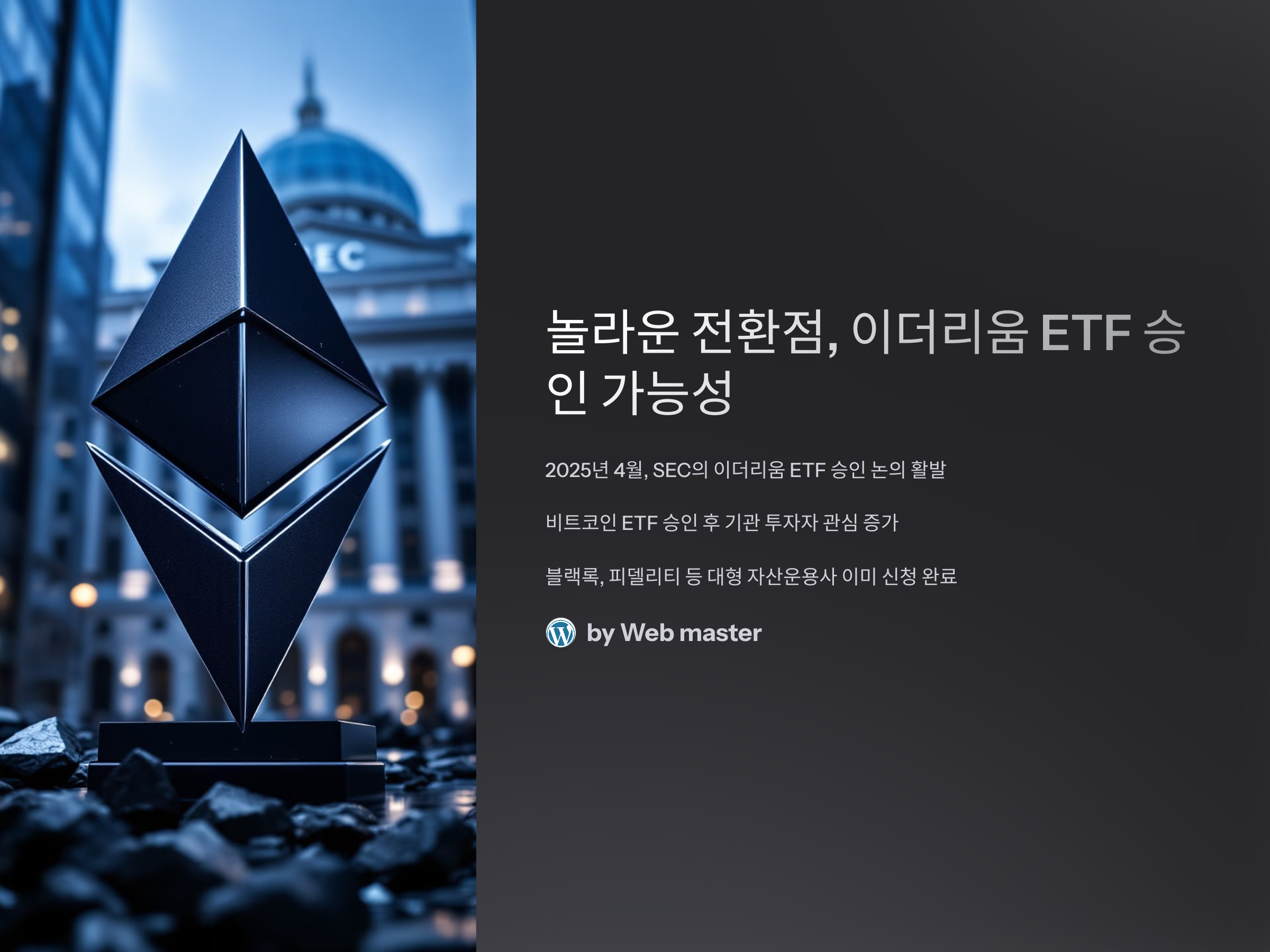2025년 4월 현재, 미국 SEC의 이더리움 ETF 승인 가능성에 대한 논의가 다시 뜨겁게 달아오르고 있습니다. 특히 2024년 말 비트코인 현물 ETF 승인 이후, 기관 투자자들이 암호화폐 시장에 본격적으로 진입하면서 이더리움 또한 그 흐름에 동참할 것이라는 기대감이 큽니다. 이더리움은 스마트 계약과 디파이 생태계의 핵심으로 기능해왔기 때문에, ETF 승인은 단순한 가격 상승 이상의 큰 의미를 가질 수 있습니다. 시장의 관점에서는 이는 ‘기관용 유동성의 대중화’로 해석될 수 있으며, SEC 내부에서의 의견 변화나 관련 청문회 일정, 그리고 시장 반응은 ETF 승인 가능성의 주요 변수로 작용하고 있습니다.