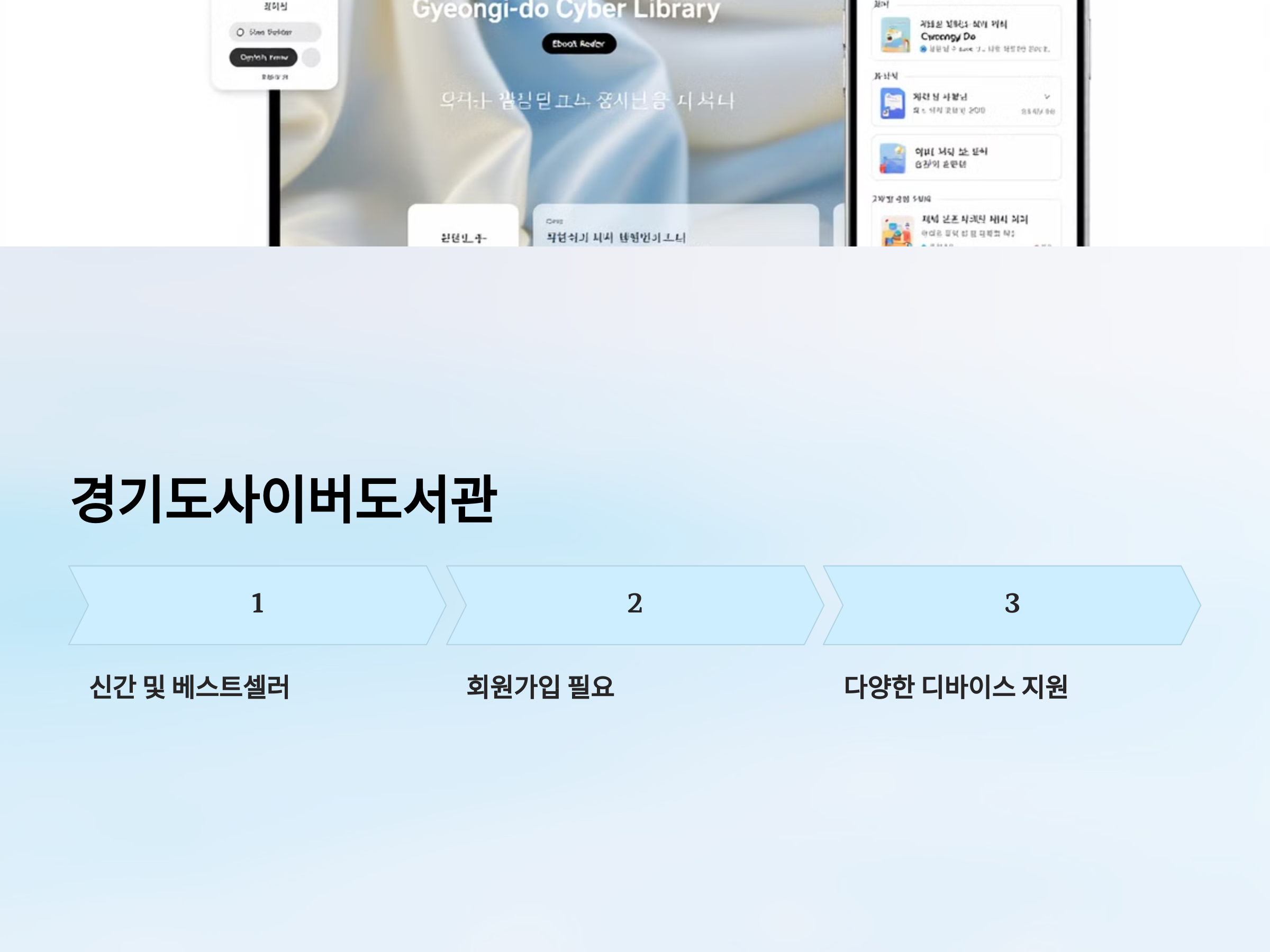 경기도사이버도서관은 경기도민뿐만 아니라 전국민이 이용할 수 있는 무료 전자책 서비스입니다.