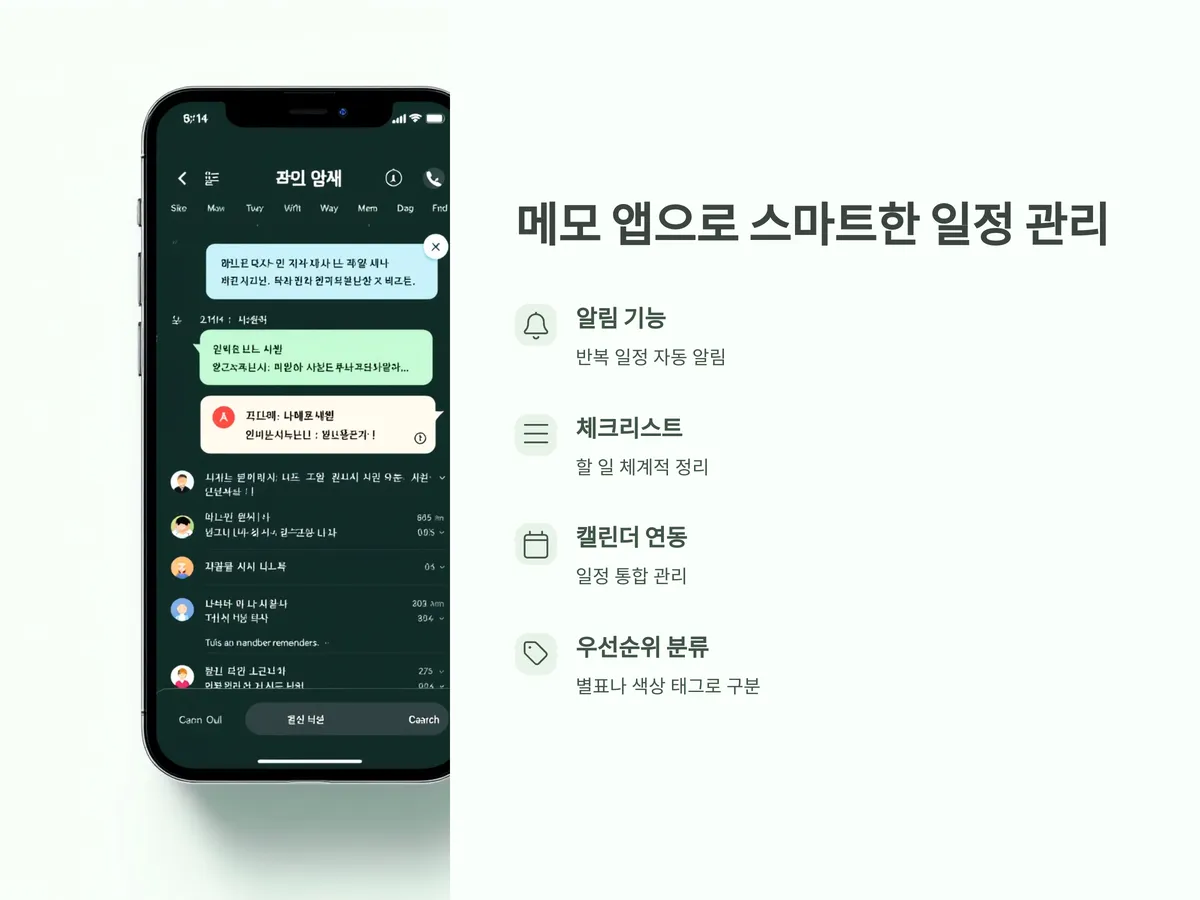 스마트폰 메모 앱은 단순한 기록장이 아닙니다. 알림 기능, 체크리스트, 캘린더 연동 등 다양한 기능을 통해 일정을 체계적으로 정리할 수 있습니다. 특히 반복적인 일정은 자동 알림 설정으로 잊지 않고 챙길 수 있으며, 중요한 프로젝트는 별표나 색상 태그를 통해 우선순위를 분류할 수 있습니다.