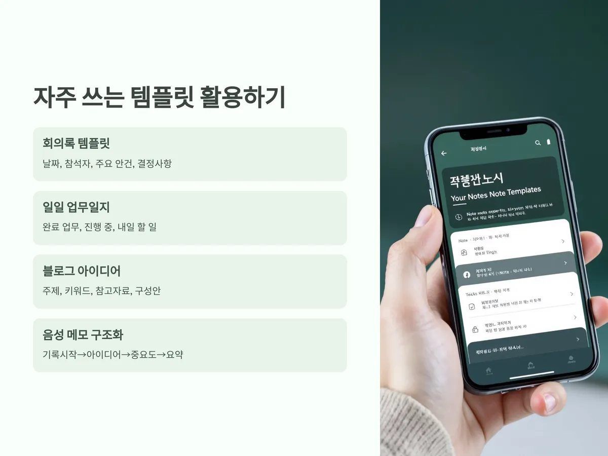 일부 메모 앱은 템플릿 기능을 자체적으로 제공하며, 그렇지 않더라도 자주 쓰는 문서를 복사해서 사용하는 방식으로도 쉽게 응용이 가능합니다. 음성 메모의 경우도 ‘기록시작→아이디어→중요도→요약’ 순으로 말하는 습관을 들이면 텍스트 변환 후 정리까지 수월해집니다.