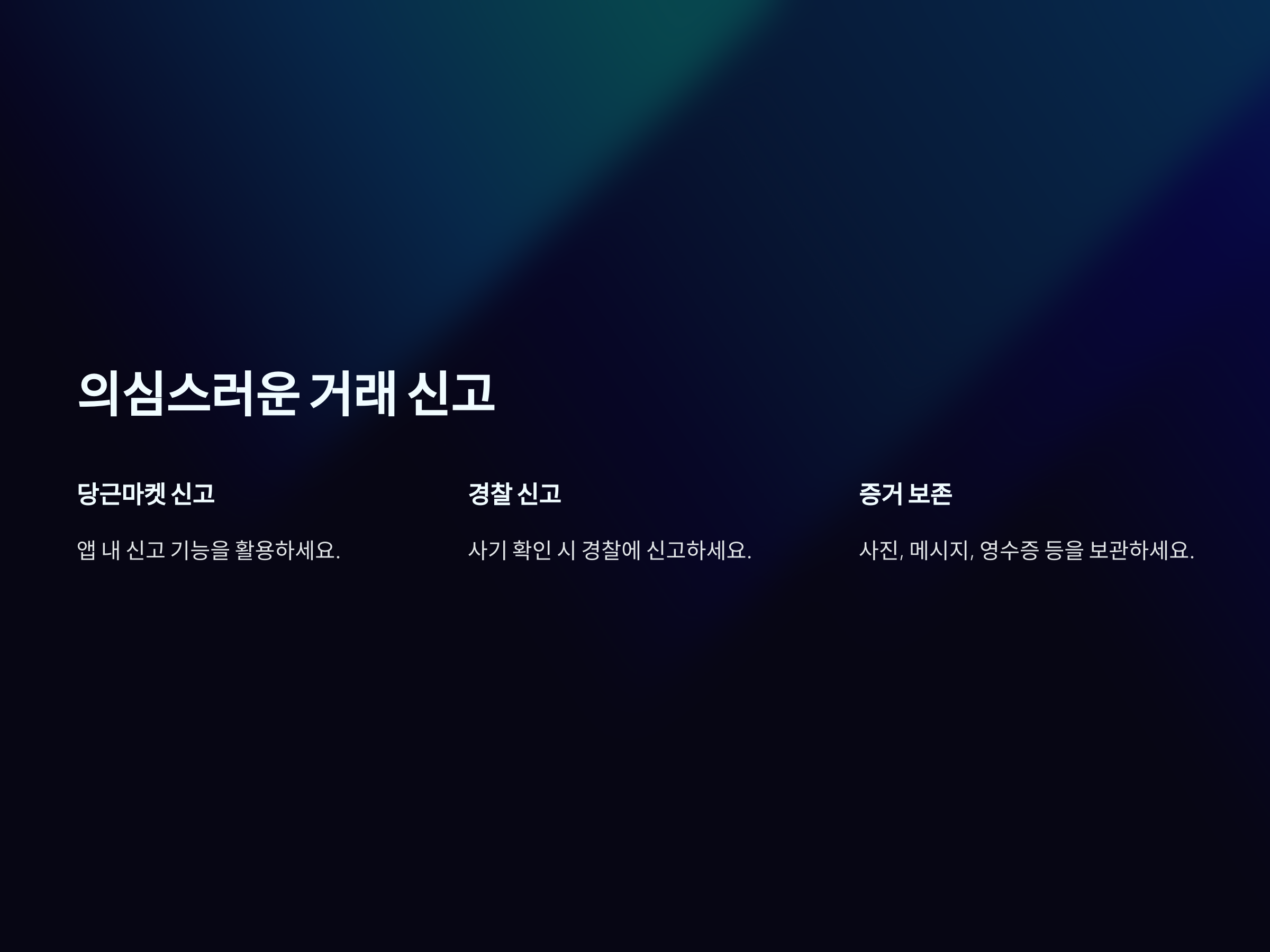 안전한 거래는 미리 준비된 자만이 할 수 있습니다. 당근마켓에서 거래할 때 항상 주의하고, 사기 피해를 예방하세요!