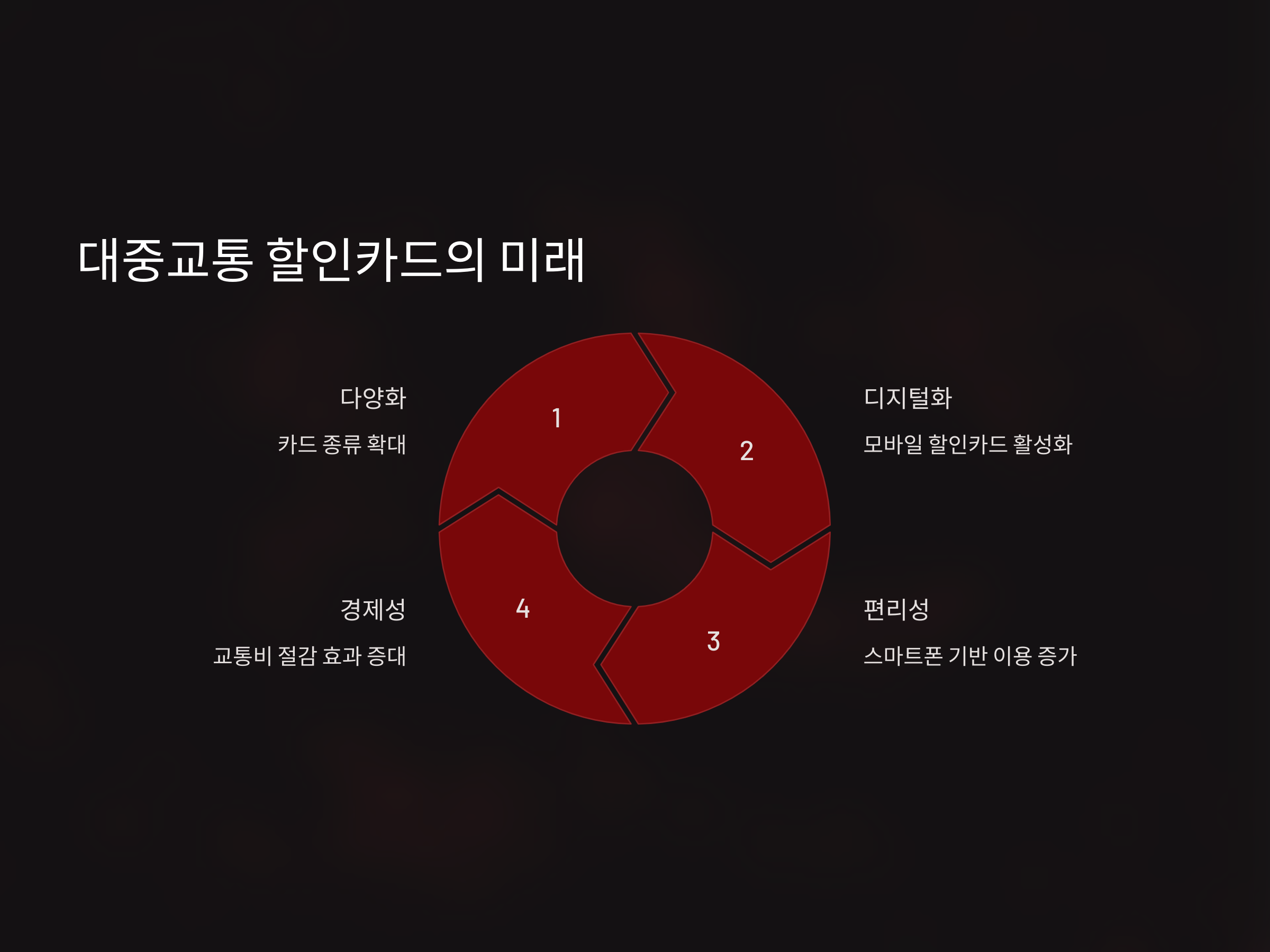 미래에는 대중교통 할인카드의 종류가 더욱 다양화되고, 사용 범위도 확장될 것으로 예상됩니다. 또한, 디지털화
