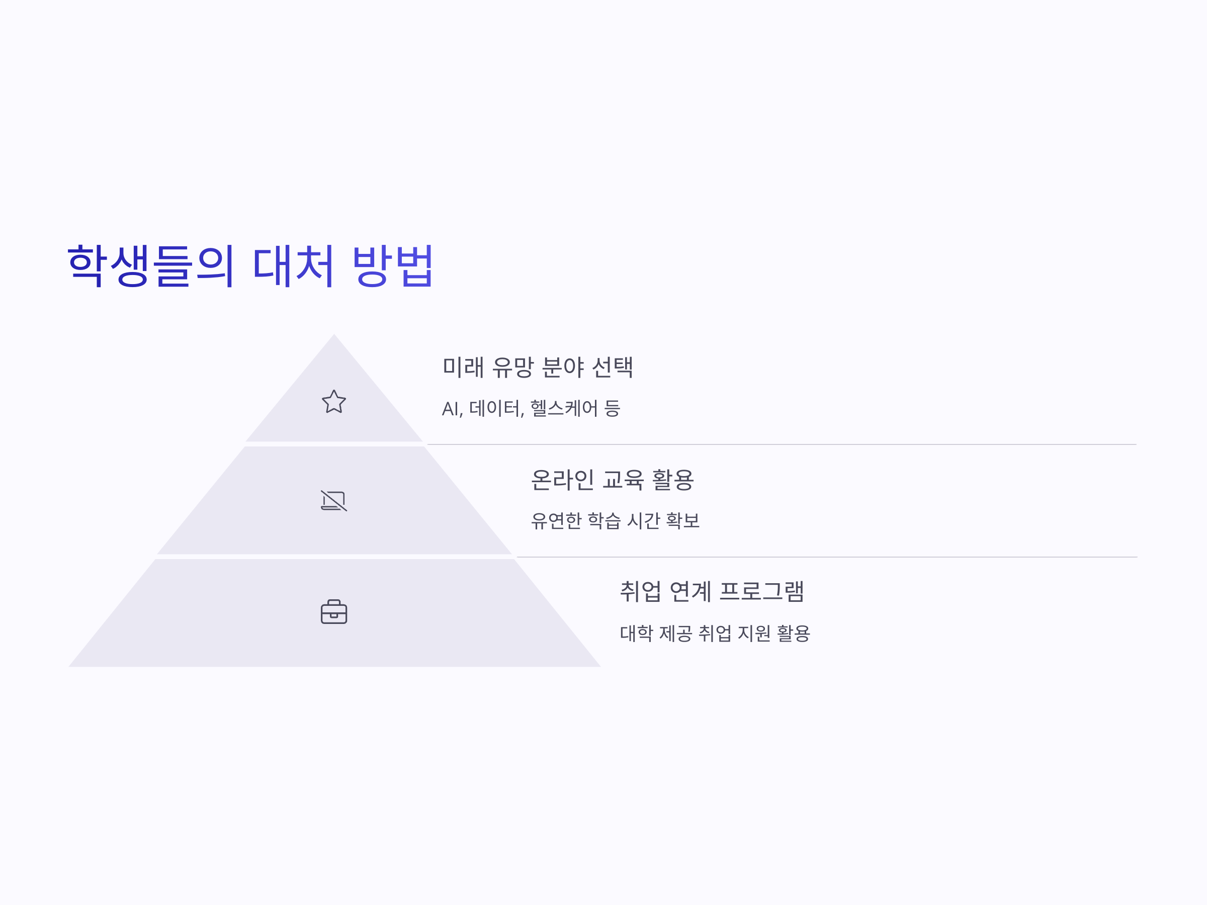 대학 구조조정은 단기적인 경제적 이유에서만 발생하는 것이 아닙니다. 교육의 본질적 변화가 필요하다는 요구도 커지고 있습니다. 4차 산업혁명과 디지털 기술의 발전에 따라, 전통적인 교육 방식은 점차 효율성을 잃어가고 있습니다. 이에 따라 교육 기관들은 더 이상 기존의 교육 패러다임에만 의존할 수 없습니다.