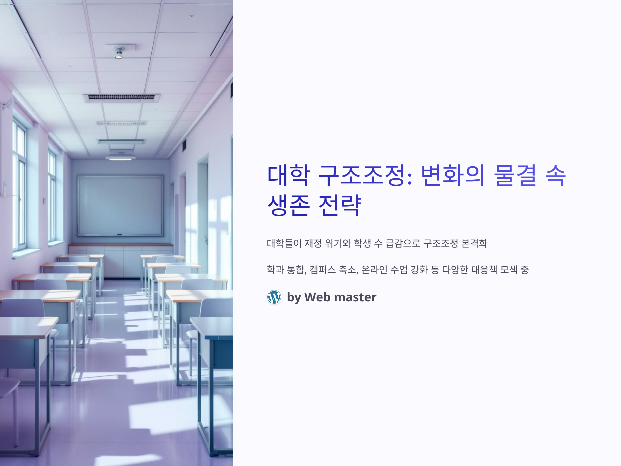 대학 구조조정은 더 이상 선택이 아닌 필수가 되었습니다. 정부의 재정 지원 축소와 함께 대학의 자율성 강화가 이루어지면서, 각 대학은 독자적인 생존 전략을 세워야 하는 상황에 놓였습니다. 이에 따라 각 대학은 수익 모델을 다각화하고, 경쟁력을 갖추기 위해 다양한 혁신을 추구하고 있습니다. 그럼에도 불구하고 이 구조조정이 학생들에게 어떤 영향을 미칠지에 대한 걱정이 커지고 있는 상황입니다.