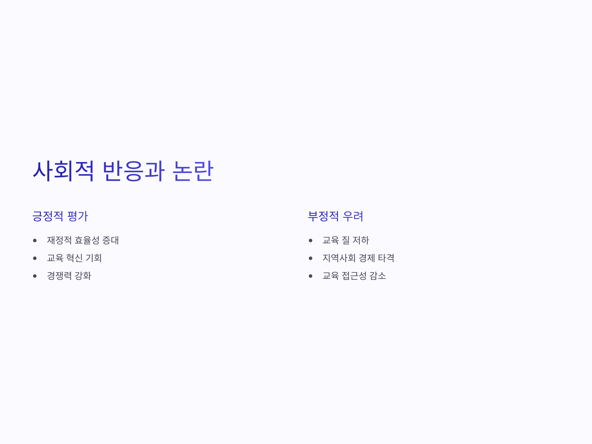 하지만 대학 구조조정이 불가피한 상황임에도 불구하고, 이 과정에서 학생들과 교수들, 그리고 지역사회는 큰 충격을 받기도 했습니다. 대학의 변화는 단기적인 측면뿐만 아니라, 장기적으로 교육의 질과 접근성에도 영향을 미치기 때문입니다.