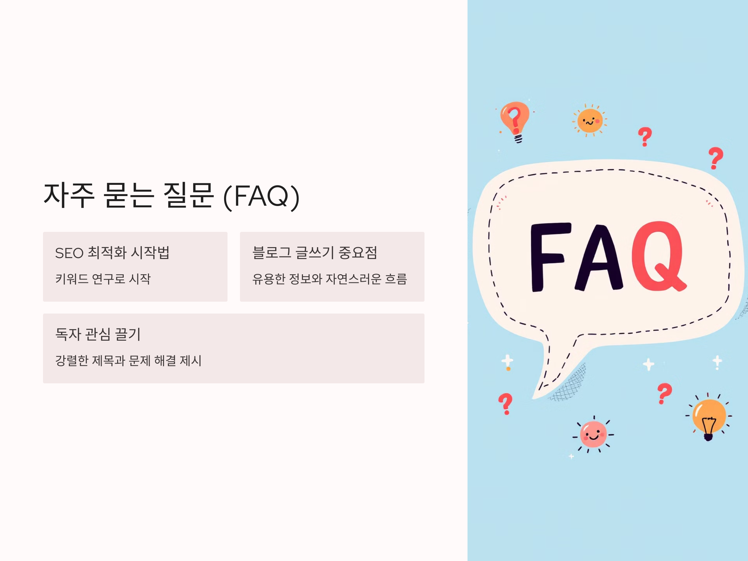 블로그를 운영하면서 글 작성과 SEO 최적화, 방문자 유입 등의 다양한 요소를 고려해야 합니다. 중요한 점은, 한 번의 글 작성으로 모든 것을 완벽하게 할 수 없다는 것입니다. 꾸준히 개선하고, 실험하며, 독자들의 피드백을 반영하는 것이 중요합니다.