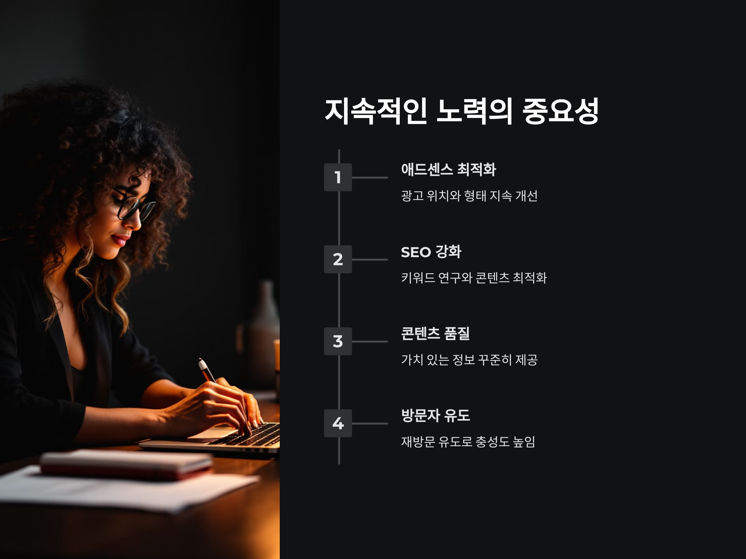 수익을 극대화하기 위해서는 방문자를 끌어들이는 것뿐만 아니라, 방문자가 실제로 콘텐츠에 가치를 느끼고 다시 돌아오게 만드는 것이 중요합니다. 이를 위해서는 콘텐츠의 질을 높이는 것이 필요합니다. 독창적이고 유익한 정보는 방문자에게 큰 가치를 제공하며, 그들이 다시 방문하게 만듭니다.