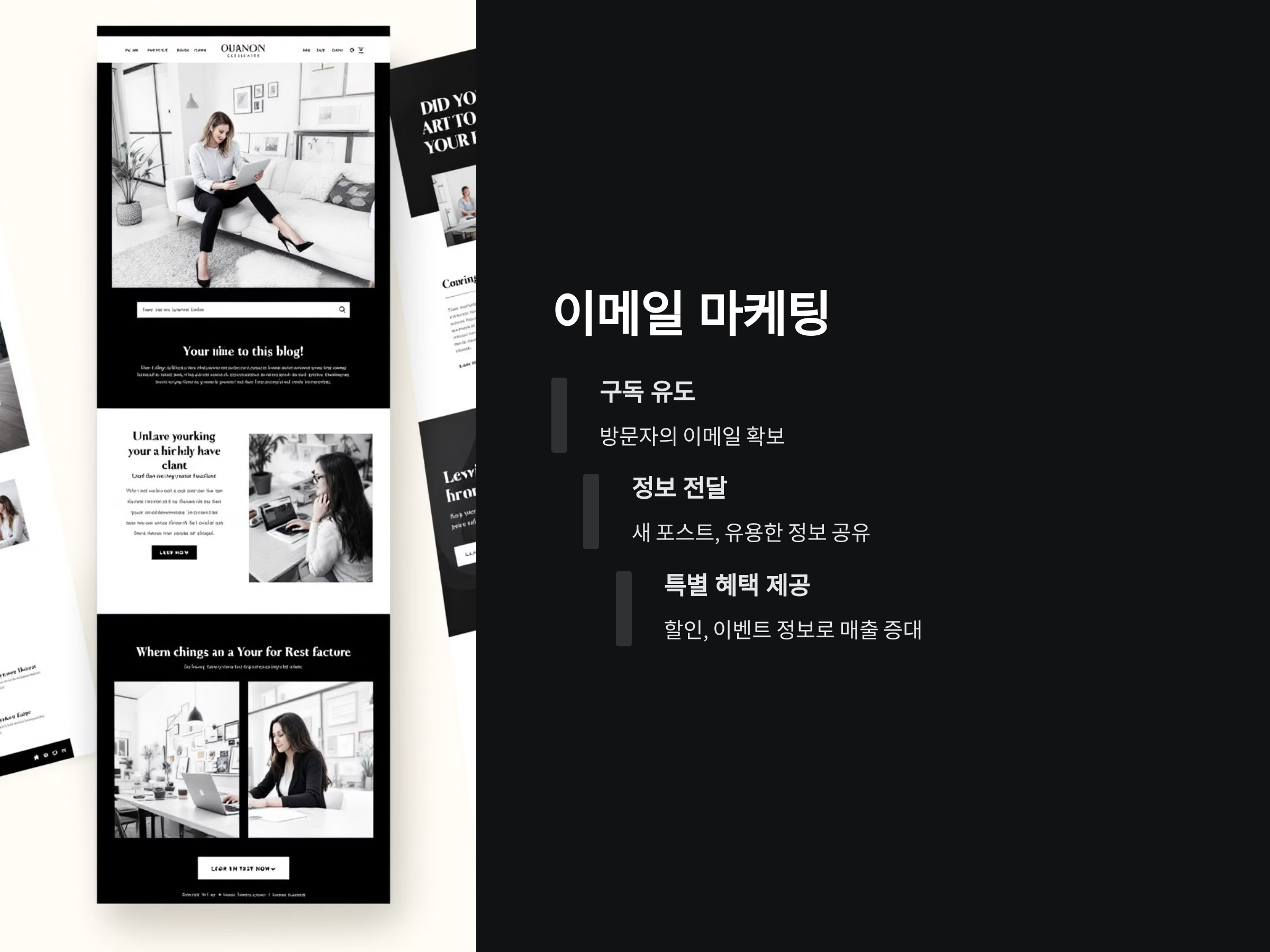 이메일 마케팅은 블로그 수익화에서 중요한 역할을 할 수 있습니다. 방문자가 블로그에 방문할 때마다 이메일 구독을 유도하고, 이를 통해 새로운 포스트나 유용한 정보를 이메일로 전달할 수 있습니다. 이렇게 하면 블로그 방문자가 계속해서 방문하게 만들 수 있으며, 그들이 다시 돌아올 확률이 높아집니다.