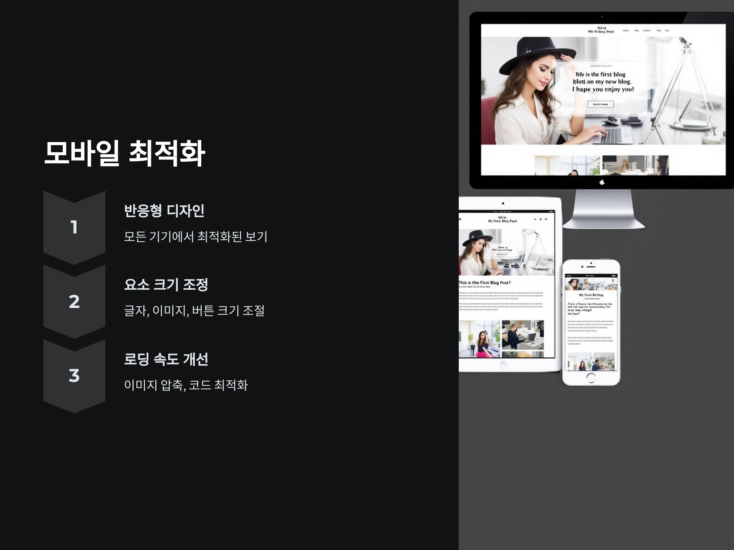 모바일에서 블로그가 잘 보이도록 하기 위해서는 반응형 웹 디자인을 적용하는 것이 중요합니다. 글자의 크기, 이미지 크기, 버튼 크기 등 모든 요소가 모바일 화면에서 잘 보일 수 있도록 조정해야 합니다. 또한, 페이지 로딩 속도 역시 중요한 요소이므로, 이미지 압축 및 코드 최적화 등을 통해 속도를 개선해야 합니다.