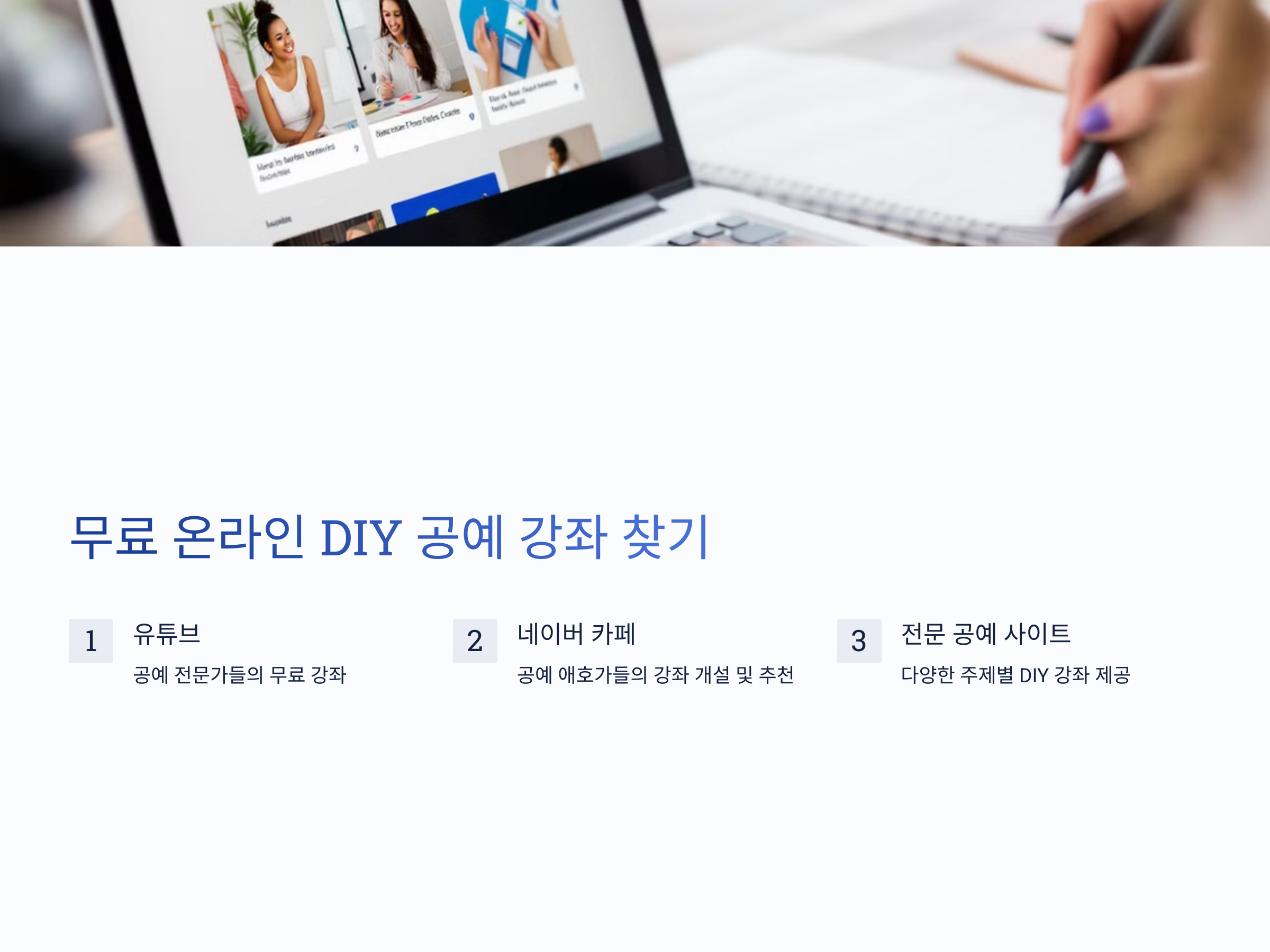 무료 온라인 DIY 공예 강좌를 찾는 것은 생각보다 간단합니다. 다양한 플랫폼에서 손쉽게 무료 강좌를 제공하고 있기 때문인데요, 가장 대표적인 플랫폼으로는 유튜브, 네이버 카페, 그리고 여러 전문 공예 사이트들이 있습니다. 이들 사이트에서는 다양한 주제의 DIY 강좌가 올라와 있으며, 자신이 배우고 싶은 주제에 맞는 강좌를 고를 수 있습니다.