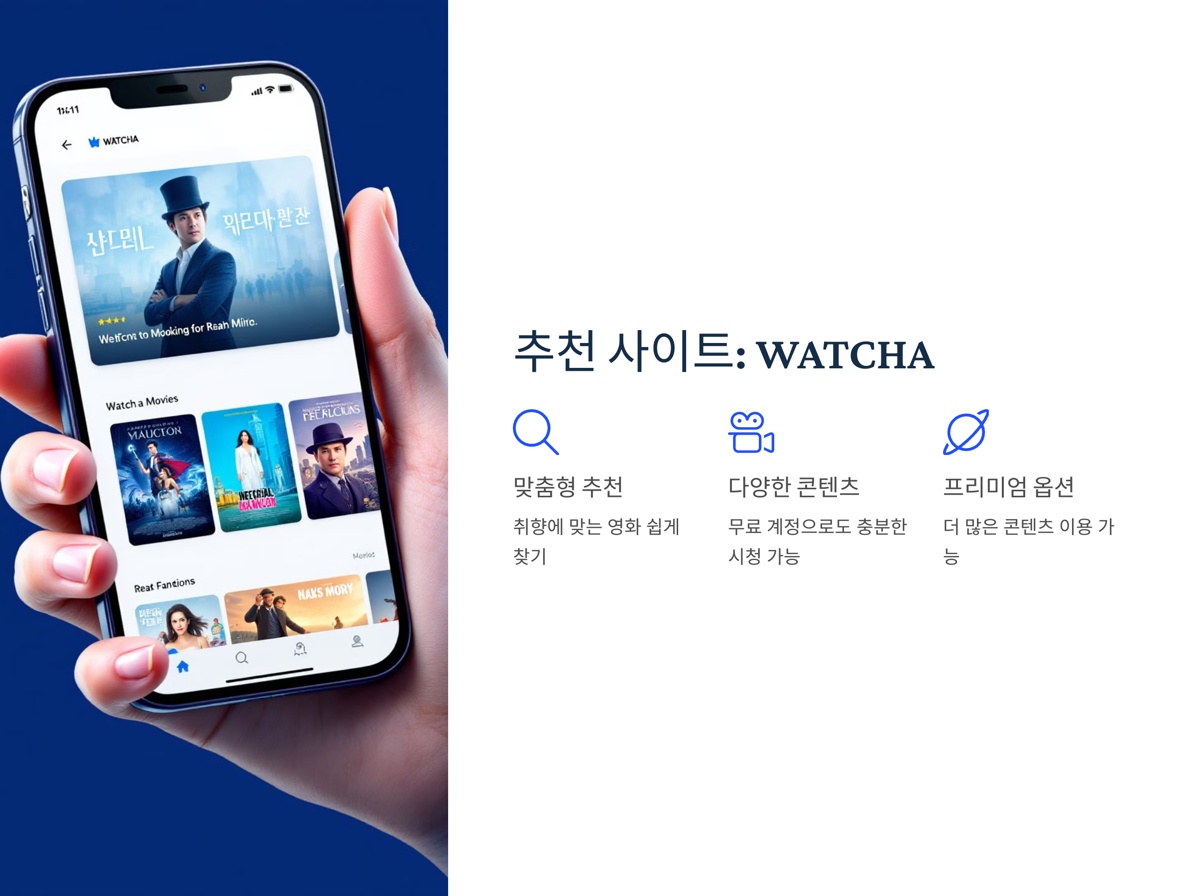 왓챠플레이는 사용자가 주는 별점과 리뷰를 바탕으로 영화를 추천해주는 기능이 있습니다. 사용자 맞춤형 추천으로 새로운 영화를 쉽게 찾을 수 있으며, 최신 영화나 인기 드라마도 제공합니다. 무료로 제공되는 콘텐츠는 약간 제한적일 수 있지만, 유료 구독을 통해 더 많은 콘텐츠를 즐길 수 있습니다.
