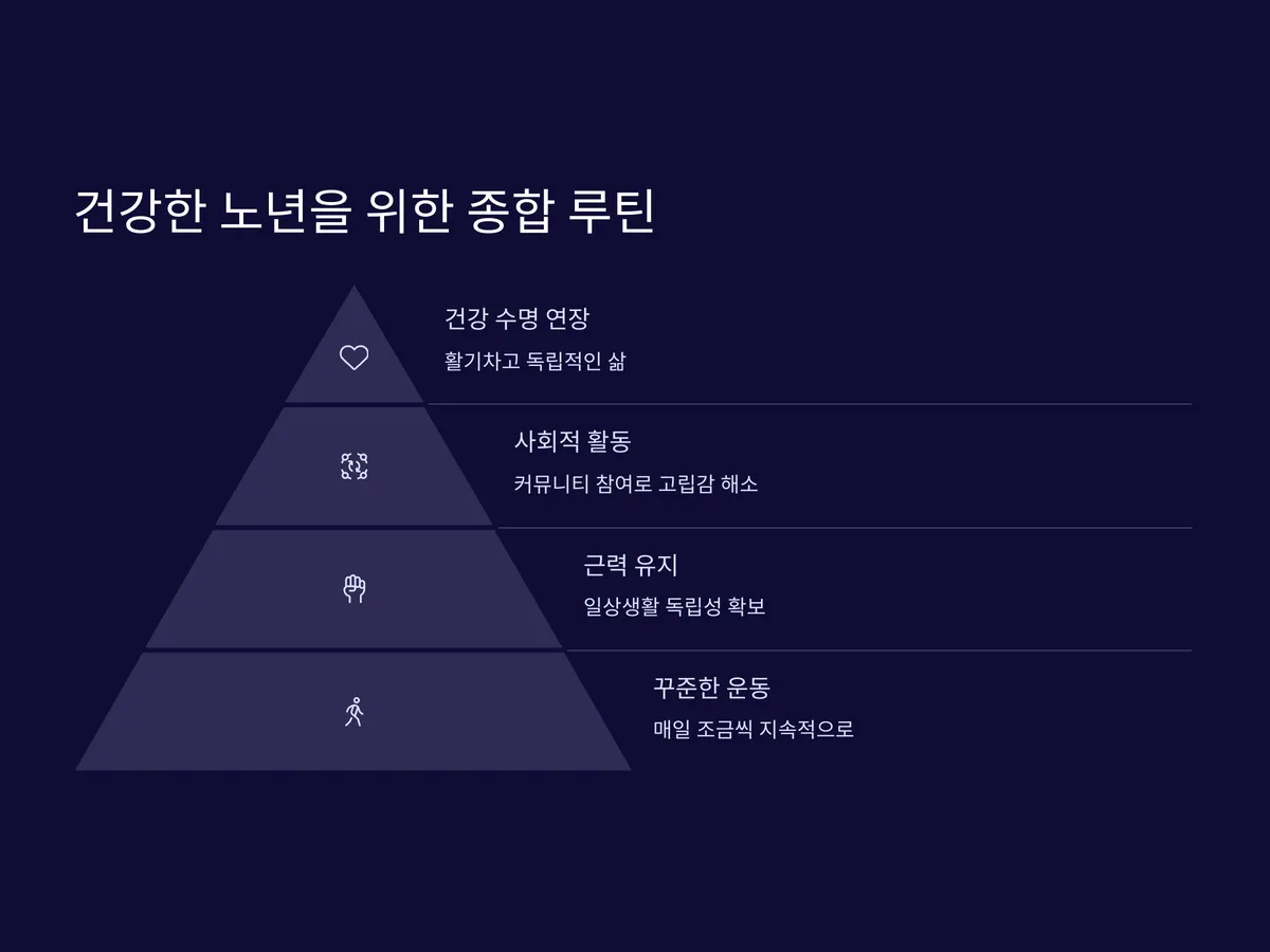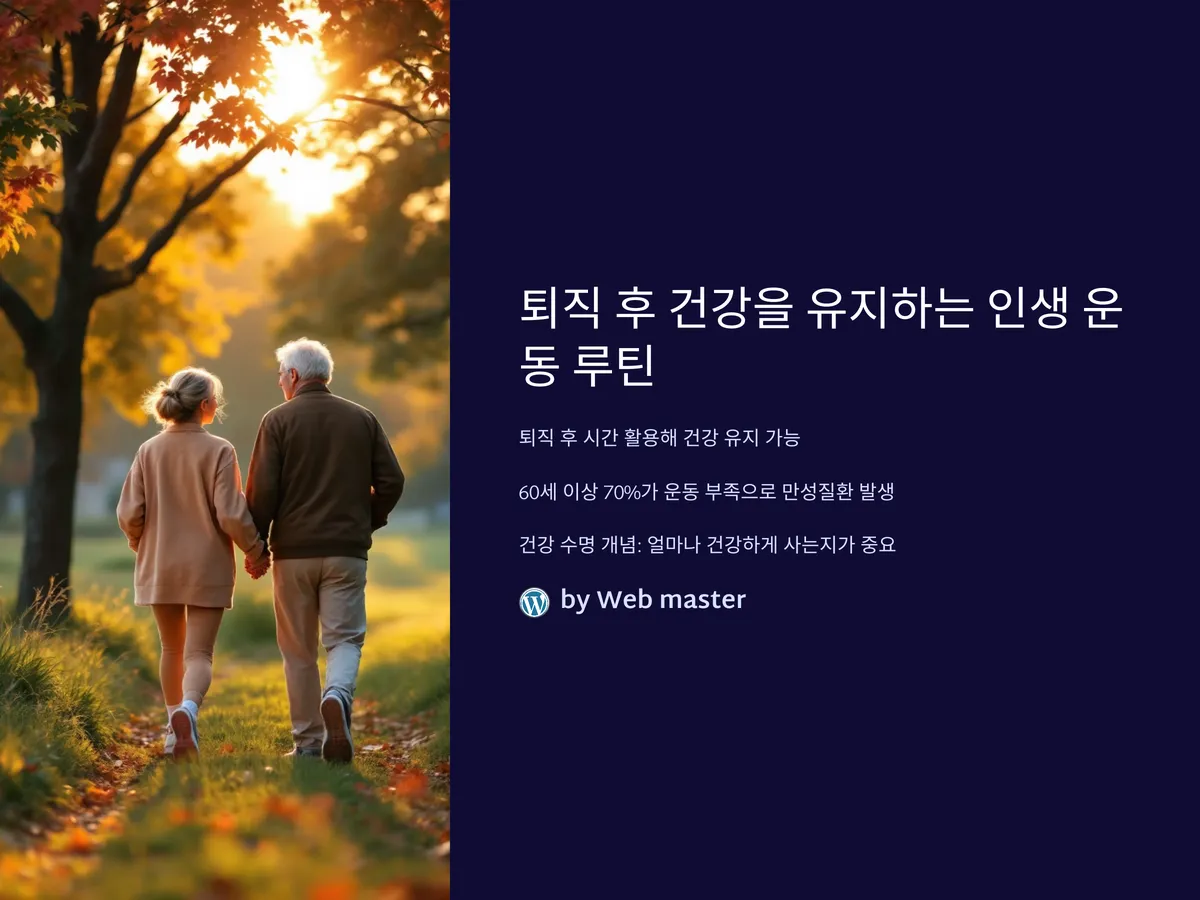 퇴직 후에는 오히려 시간이 많아지면서 자기 관리를 잘하면 건강을 훨씬 더 오래 유지할 수 있습니다. 특히 최근 보건복지부의 조사에 따르면, 60세 이상 시니어들의 약 70%가 운동 부족으로 인해 관절염, 고혈압, 당뇨병 등 만성질환에 시달리고 있는 것으로 나타났습니다. 이런 문제를 예방하기 위해선 ‘꾸준한 운동’이 필수인데요, 문제는 어떤 운동을, 어떻게, 얼마나 해야 할지 모른다는 것입니다. 이번 글에서는 퇴직 후 누구나 쉽게 실천할 수 있는 맞춤형 운동 루틴을 알려드립니다. 특히 관절 무리 없이 집에서도 가능한 운동들을 위주로 구성해, 퇴직자 분들에게 실제로 도움이 되는 정보를 담았습니다. 또한 요즘은 '건강 수명'이라는 개념이 확산되면서, 단순히 오래 사는 것이 아니라, 얼마나 건강하게 사는지가 더 중요해졌습니다. 지금부터 소개할 루틴을 잘 따라하면 활기차고 독립적인 삶을 오랫동안 유지할 수 있습니다.