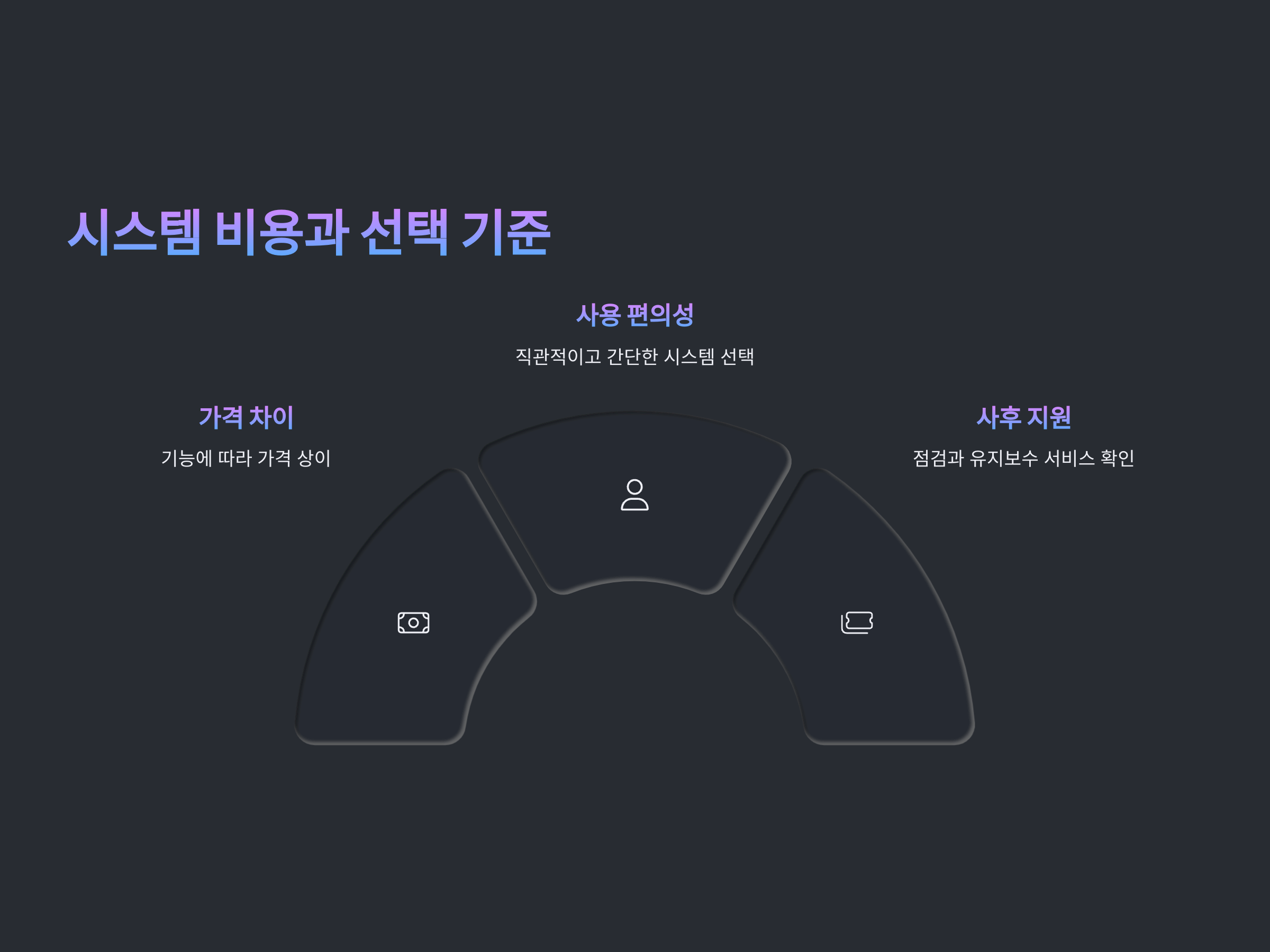 시스템을 선택할 때는 노인이 사용하기 쉽도록 해야 합니다. 버튼 크기나 화면 크기, 음성 인식 기능 등이 중요한 요소입니다. 또한, 시스템이 복잡하거나 사용하기 어려운 경우 노인이 실제로 사용할 가능성이 적어지므로, 직관적이고 간단한 시스템을 선택하는 것이 중요합니다.