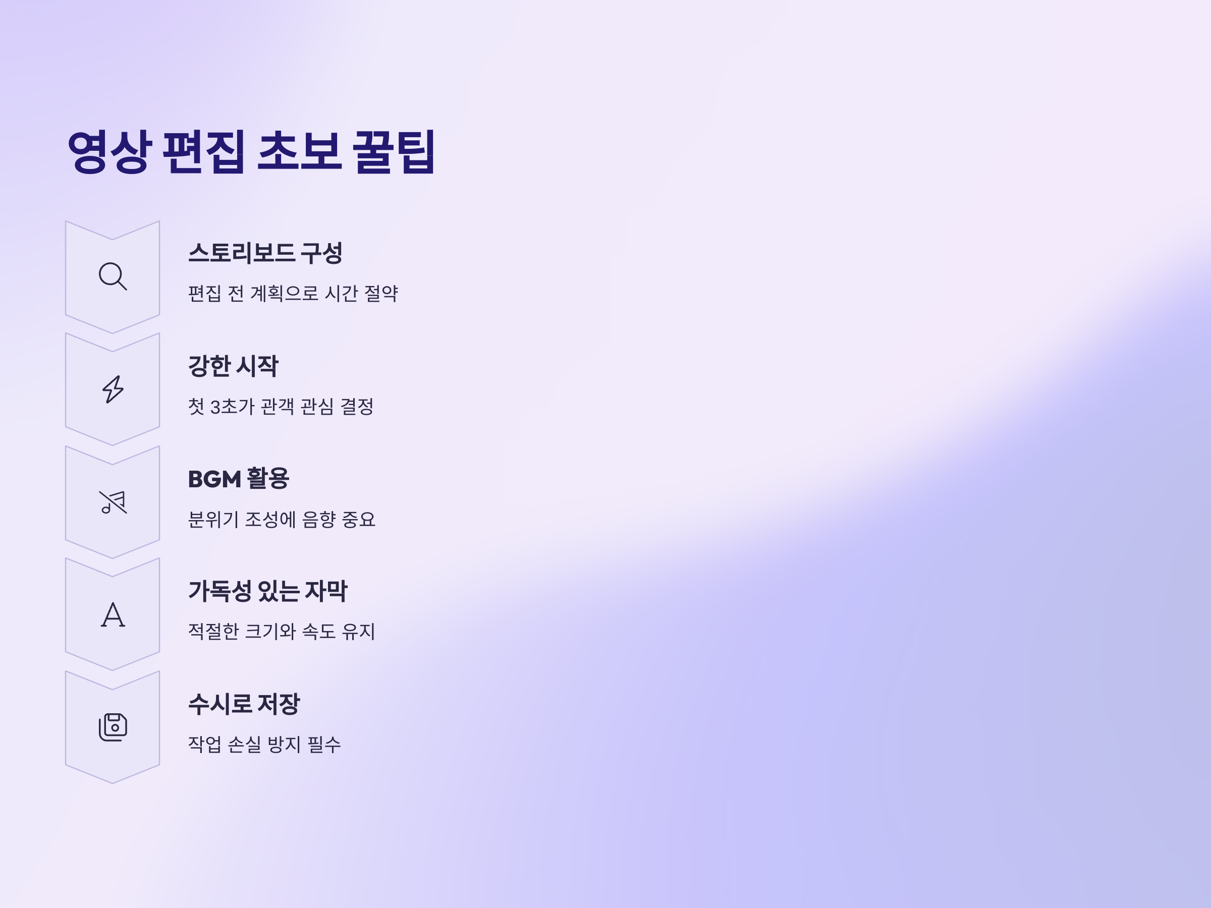 아무리 좋은 편집 툴이 있어도, 효과적으로 사용하는 방법을 모르면 좋은 결과물을 얻기 어렵습니다. 영상 편집 초보자가 꼭 알아야 할 꿀팁은 다음과 같습니다.