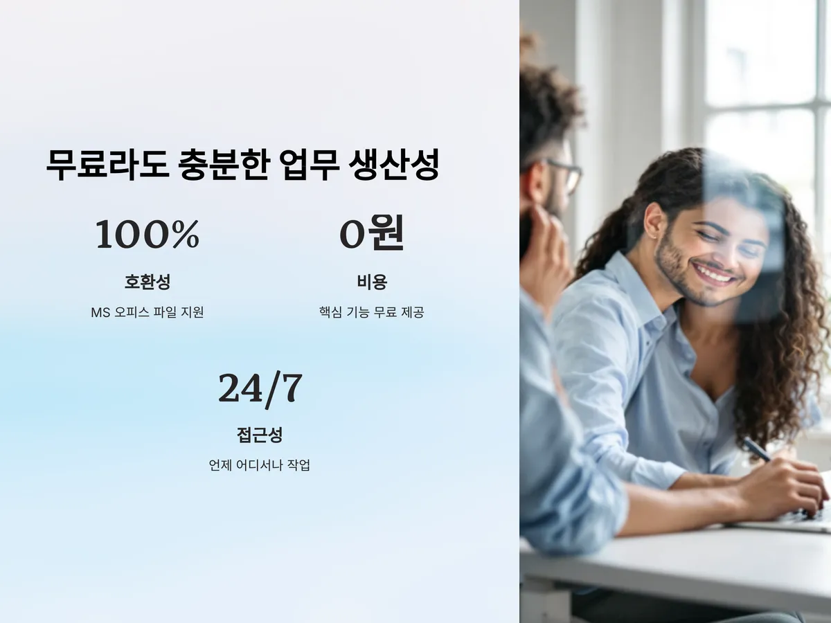 워드, 엑셀, 파워포인트 파일을 그대로 불러와서 편집하고, 다시 동일한 포맷으로 저장할 수 있기 때문에 오피스 사용자들과의 협업에서도 큰 불편함이 없습니다. 다만 인터넷이 반드시 필요하다는 점, 복잡한 서식이나 매크로 기능에는 한계가 있다는 점은 유의해야 합니다.