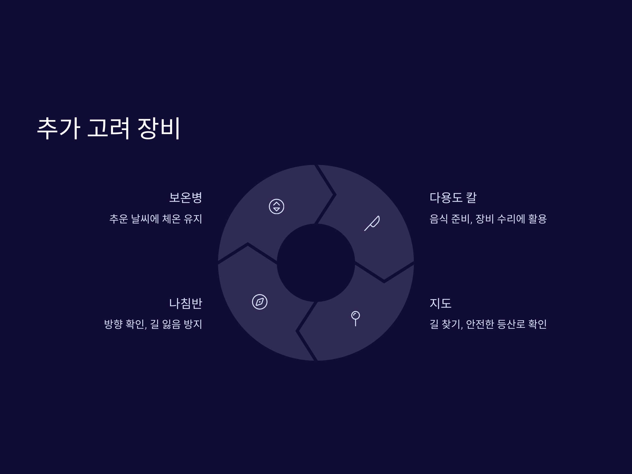 초보자가 기본 장비를 모두 갖춘 후에는 장기적인 등산을 위해 점차적으로 추가 장비를 구비하는 것이 좋습니다. 추가 장비는 안전과 편리성을 높여주는 요소들입니다.