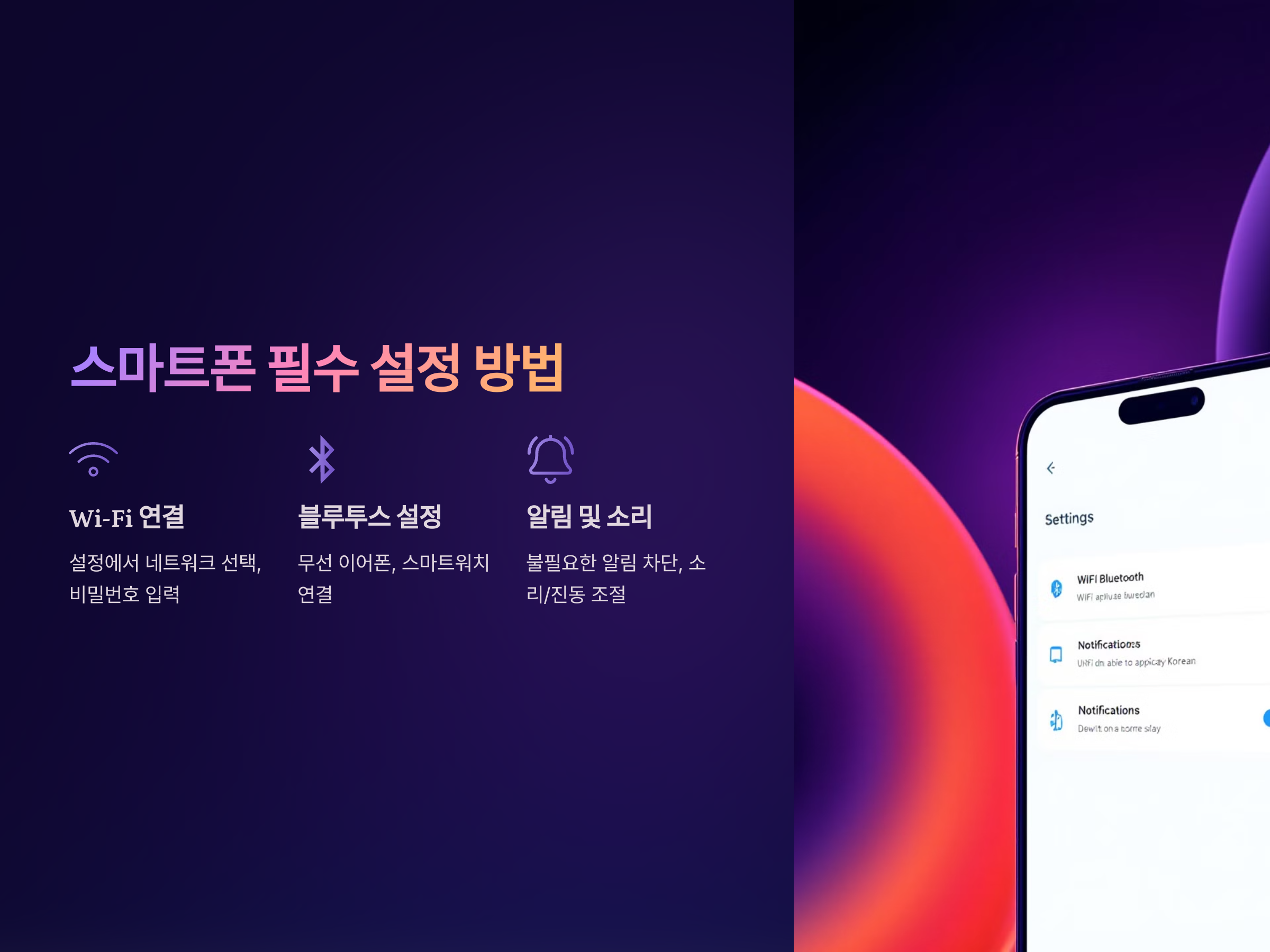 - 불필요한 알림은 차단하고, 소리 및 진동 설정을 조절하여 사용 환경을 최적화할 수 있습니다.
