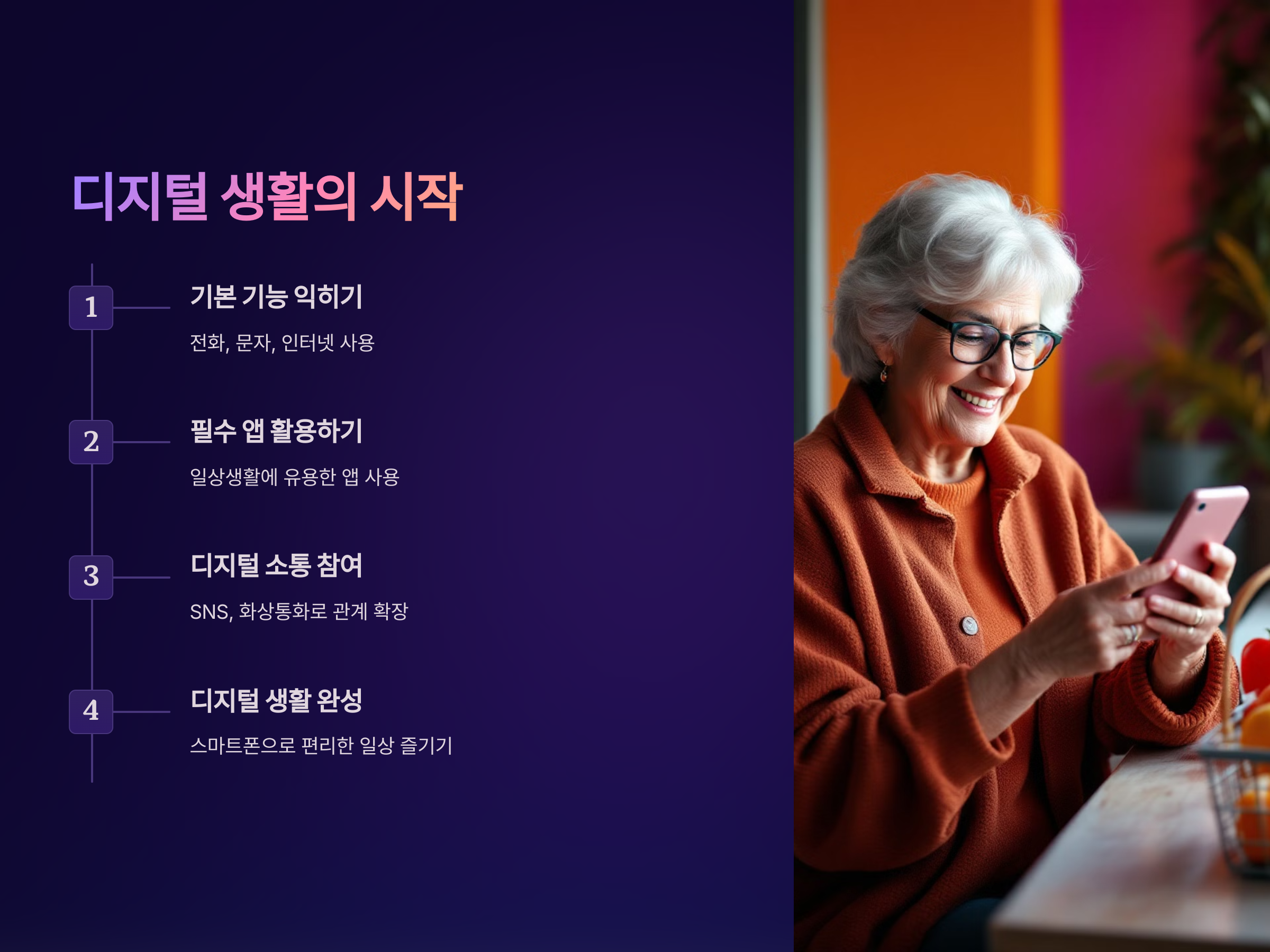 스마트폰이 필수품이 된 시대, 하지만 아직도 이를 제대로 활용하지 못하는 사람들이 많습니다. 디지털 기기 사용에 익숙하지 않은 사람들을 위해 스마트폰의 기본 개념부터 실생활에서 유용한 기능까지 차근차근 배워보는 시간을 가져보겠습니다. 이 글을 읽고 나면 스마트폰 사용에 대한 두려움을 떨쳐내고, 보다 편리한 디지털 생활을 시작할 수 있을 것입니다.