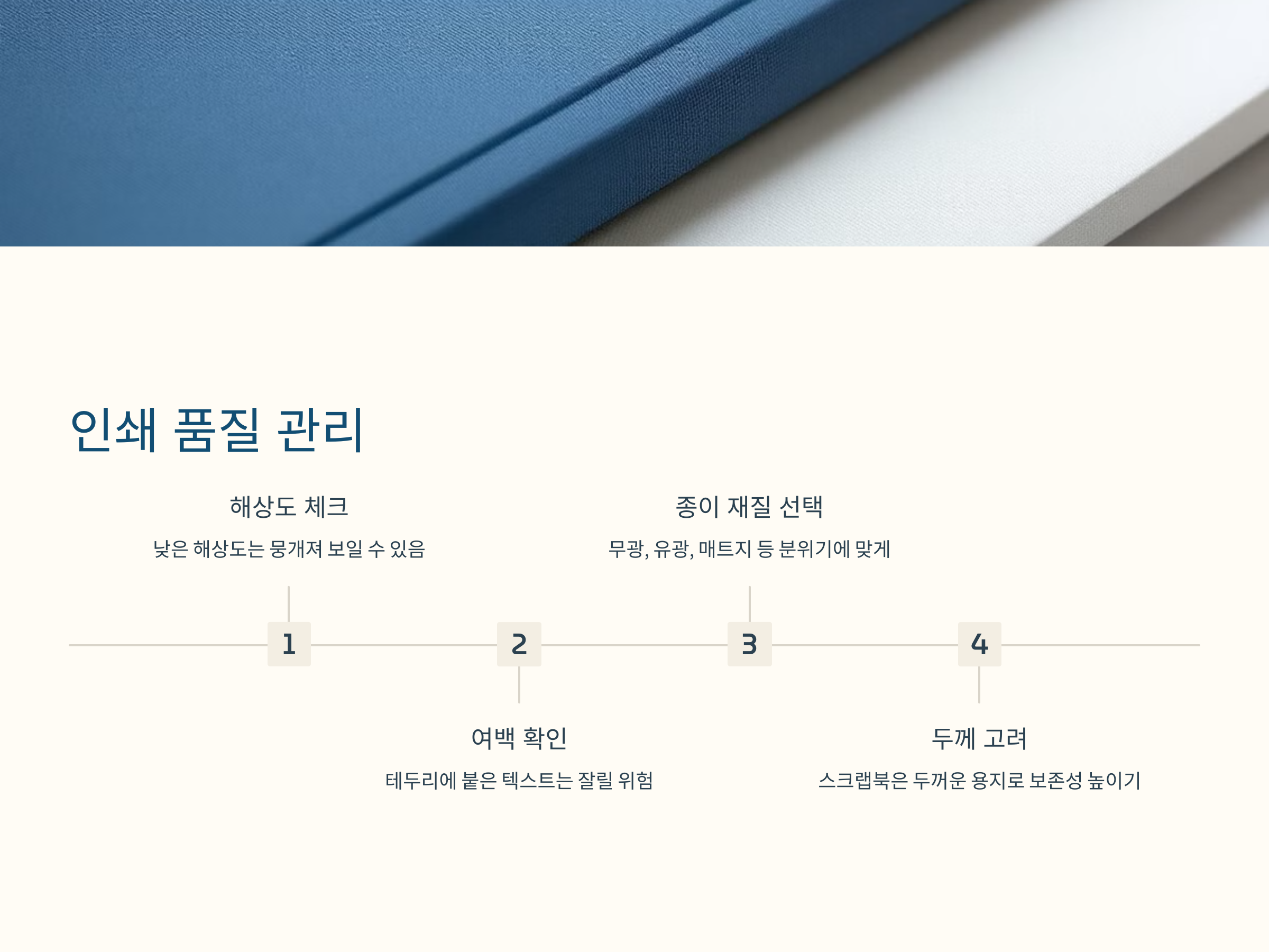포토북은 디지털로 디자인하지만, 결국 물리적으로 인쇄되어 도착하는 결과물이기 때문에 인쇄 품질도 매우 중요합니다. 인쇄 전에는 반드시 해상도를 체크하고, 각 페이지별 배경색과 여백 상태를 확인해야 합니다. 텍스트가 너무 테두리에 붙어 있으면 잘릴 수 있고, 해상도가 낮은 사진은 뭉개져 보일 수 있으므로 주의해야 합니다.