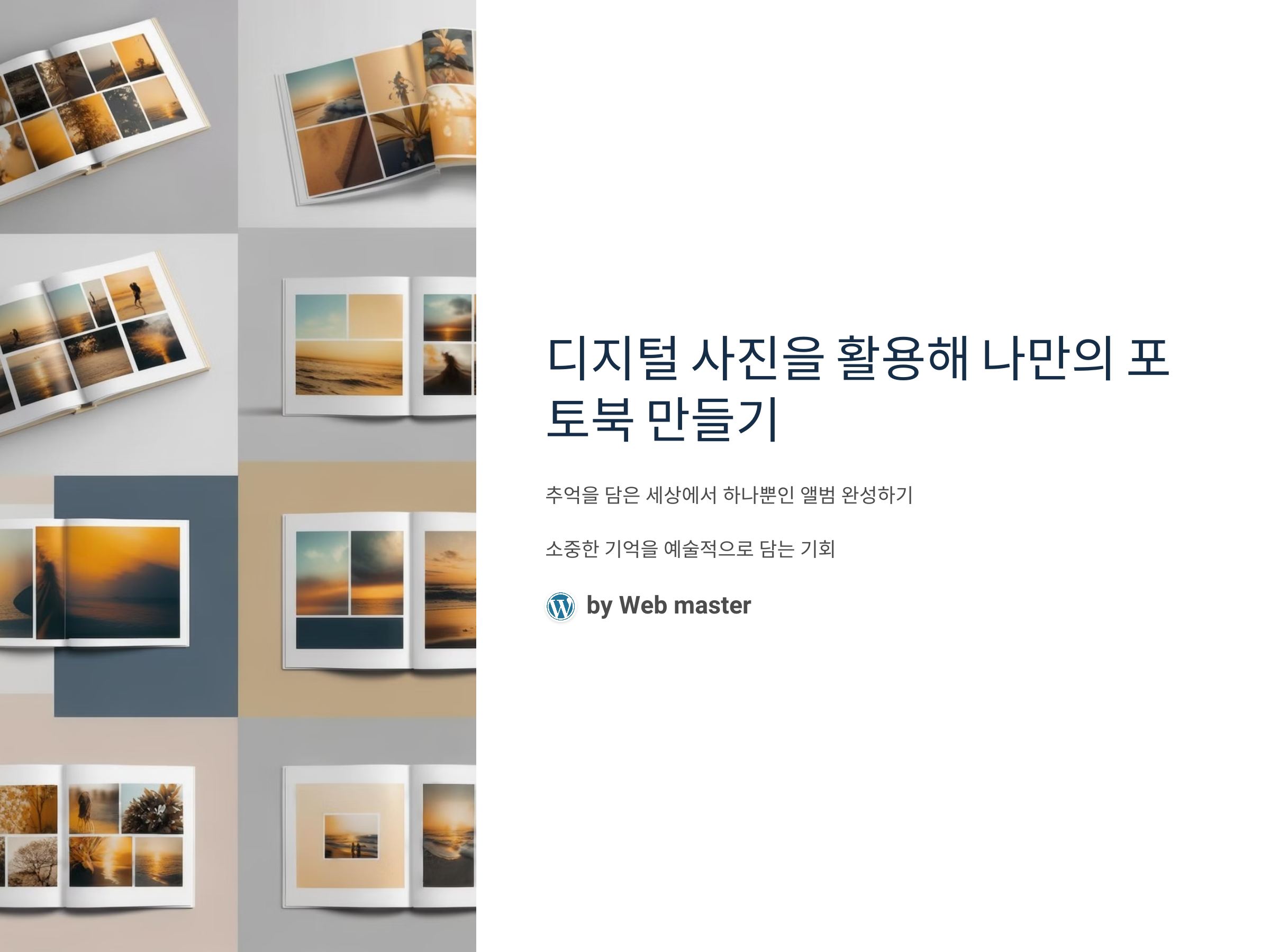 디지털 사진을 포토북으로 만드는 과정은 단순한 기억 보관을 넘어서, 특별한 추억을 예술적으로 표현하는 방법입니다. 포토북을 통해 여러분의 소중한 순간을 세상에서 하나뿐인 앨범으로 완성해보세요!