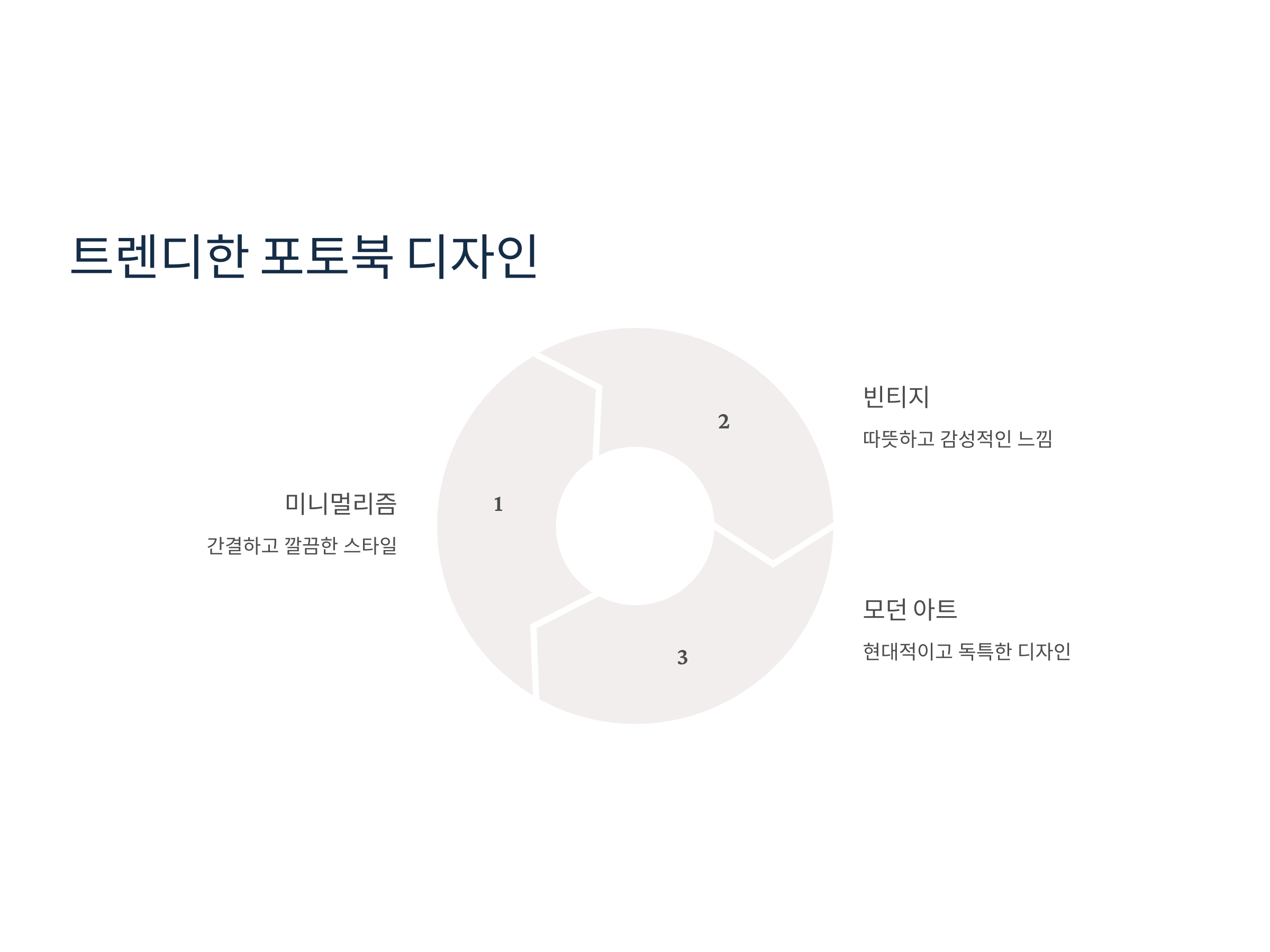 미니멀리즘은 간결하고 깔끔한 디자인을 추구하는 스타일입니다. 불필요한 장식이나 디테일을 최소화하고, 사진에 집중할 수 있는 포토북을 만들고 싶다면 이 스타일을 고려해보세요. 미니멀한 디자인은 현대적이고 세련된 느낌을 줍니다.