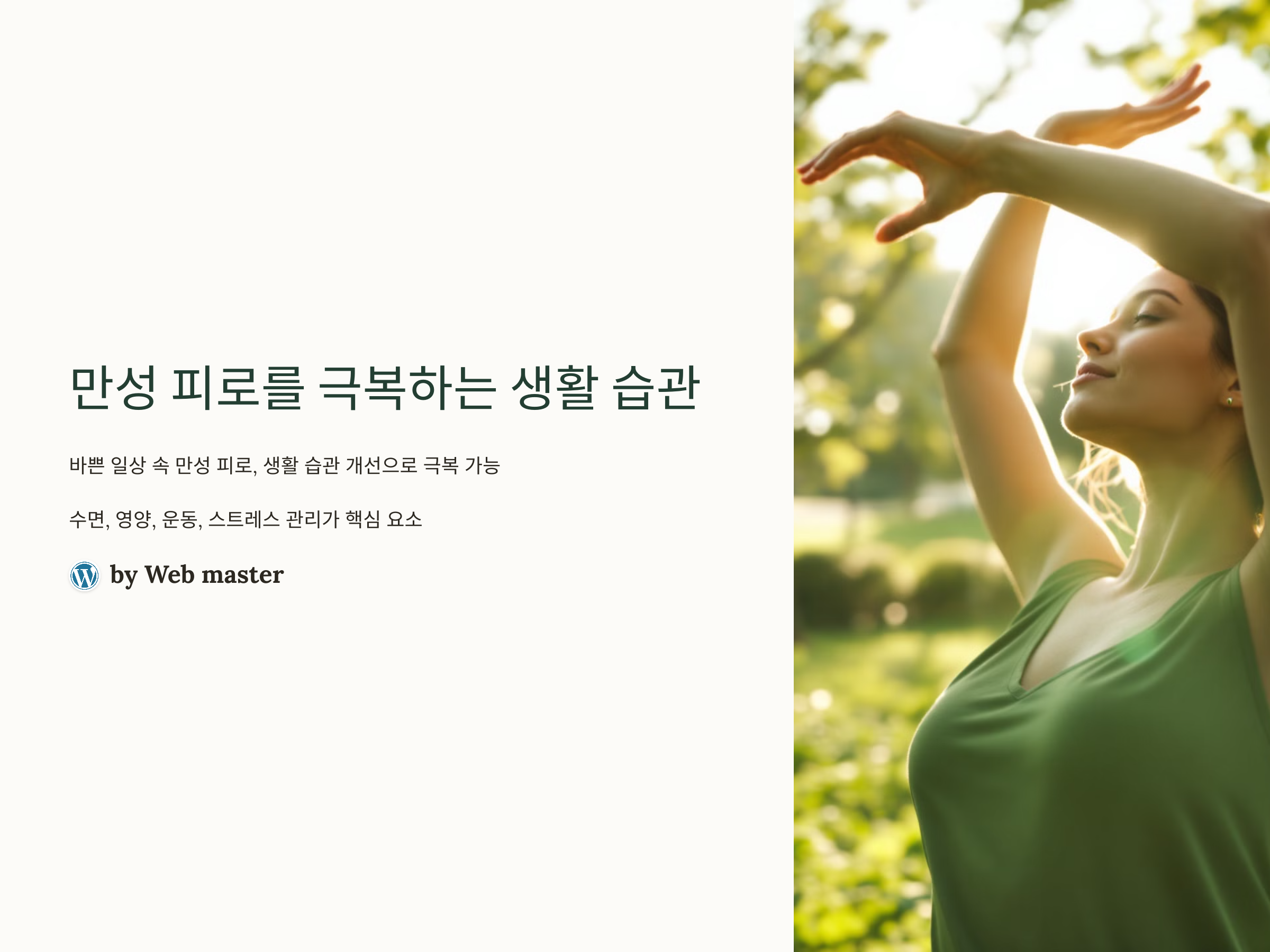 - 일정한 기상 시간 유지: 불규칙한 생활 패턴은 피로를 증가시키므로 일정한 시간에 기상하는 것이 중요합니다.