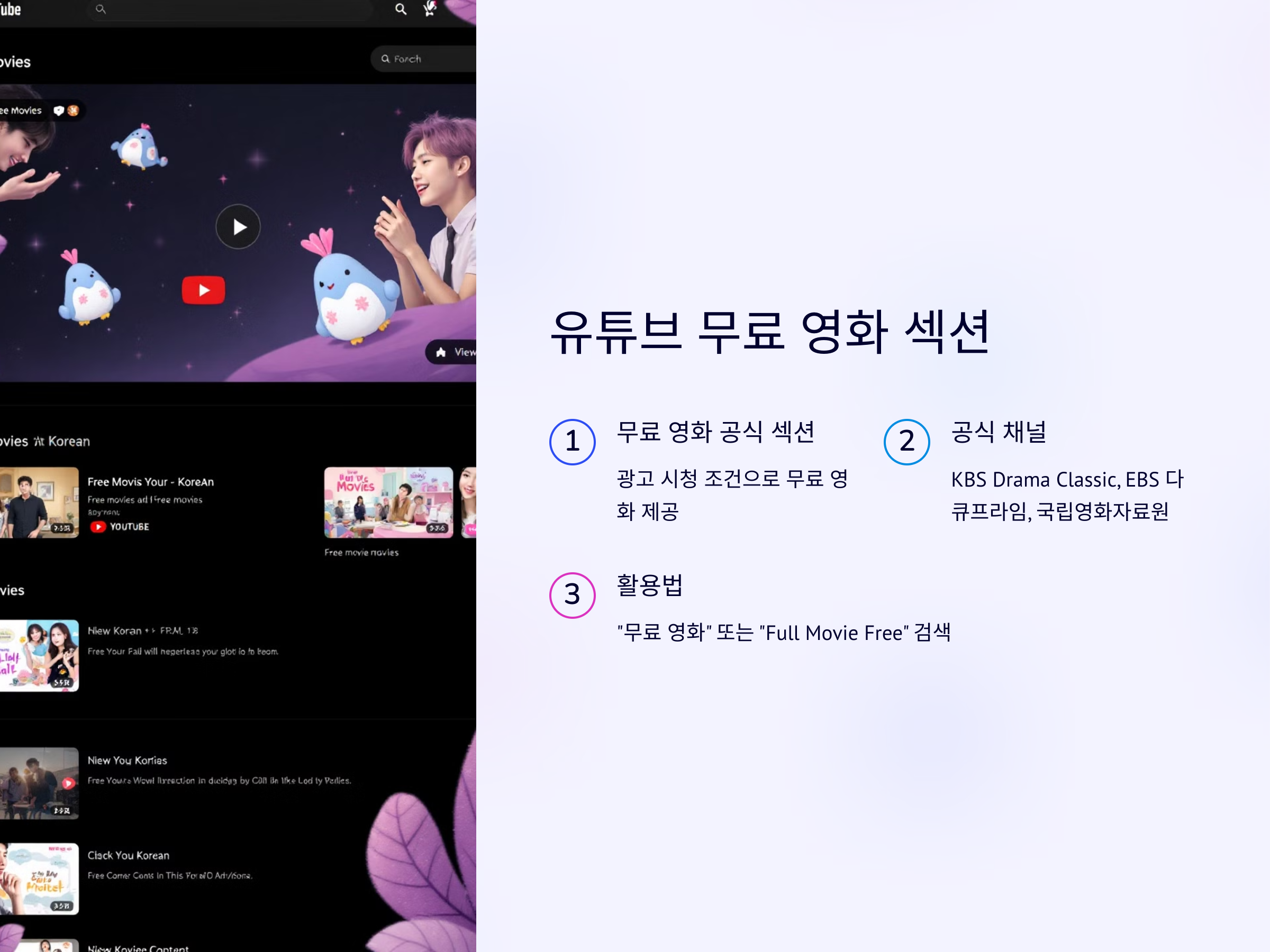📌 유튜브 무료 영화 섹션 활용법